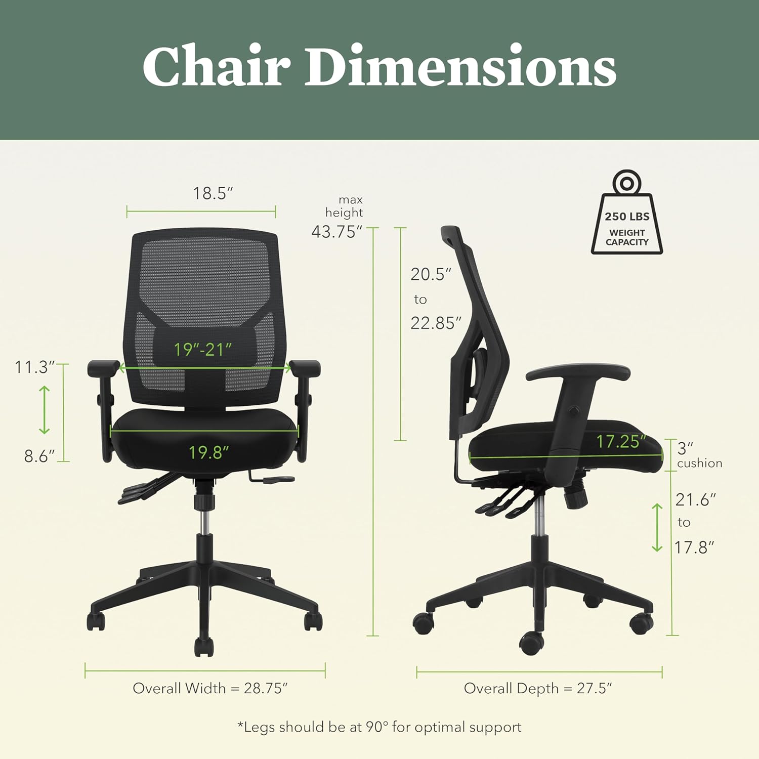 - ERGONOMIC OFFICE CHAIR: The office chair ergonomic desk chair features a breathable mesh back that conforms to your upper body, keeping you cool and comfortable while you work for prolonged periods