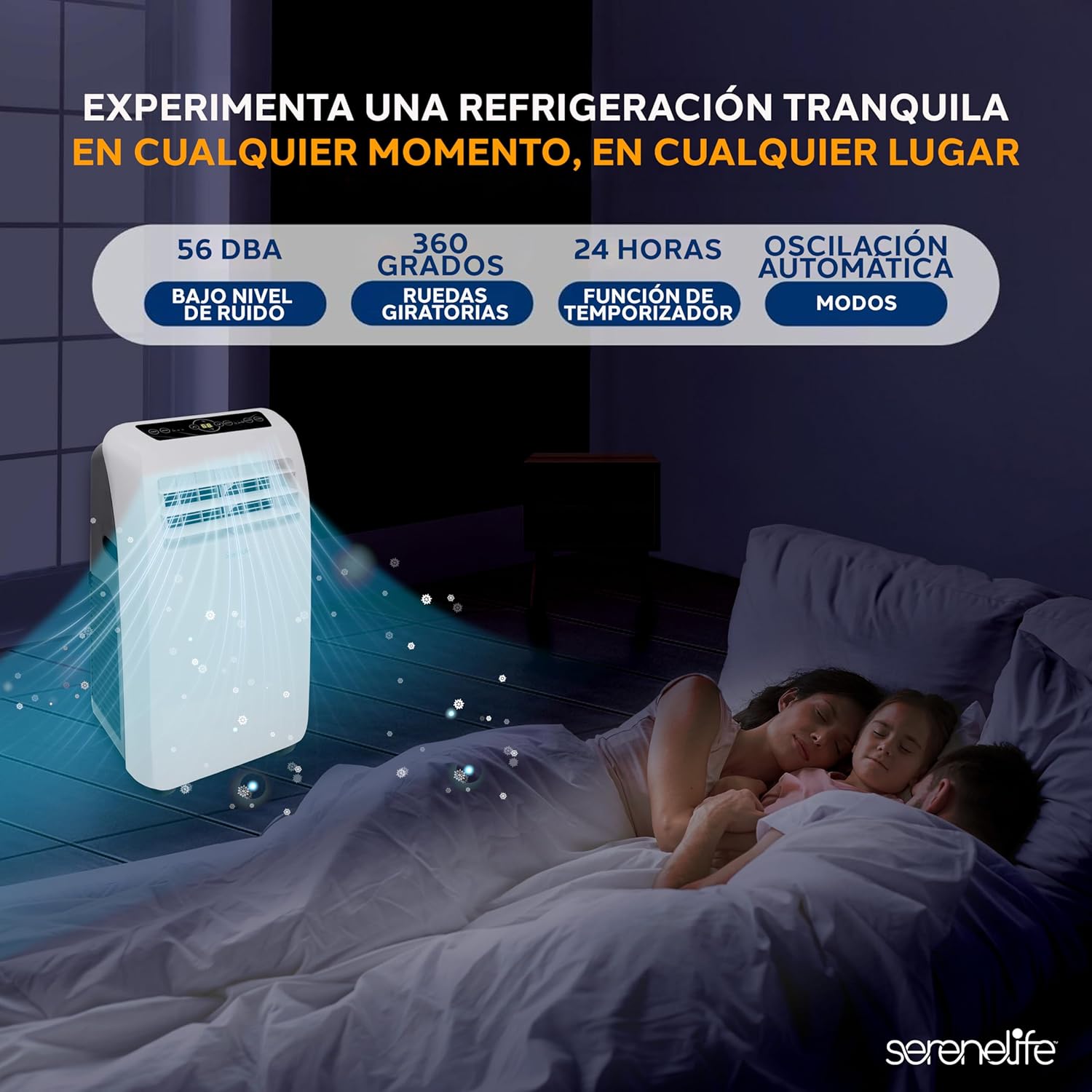 - COOLING: The SereneLife Portable Air Conditioner is perfect for cooling your rooms up to 450 sq ft. with ease, and you can enjoy a comfortable and refreshing environment even on the hottest summer days. (13.8" x 14.6" x 27.2")