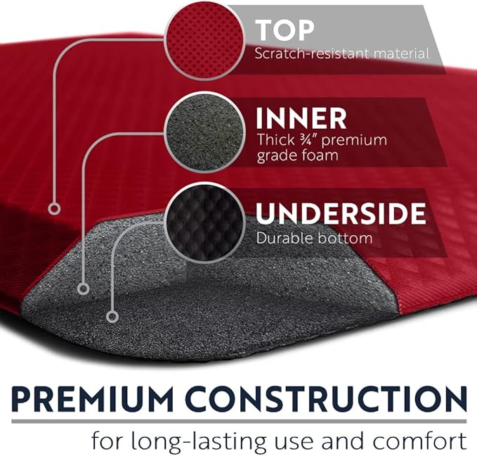 - THICK AND SUPPORTIVE CUSHIONING: extra thick, three quarter inch foam mat is extremely comfortable and engineered to help keep you supported; premium foam inner layer for strong rebound and maximum support; your feet will thank us later