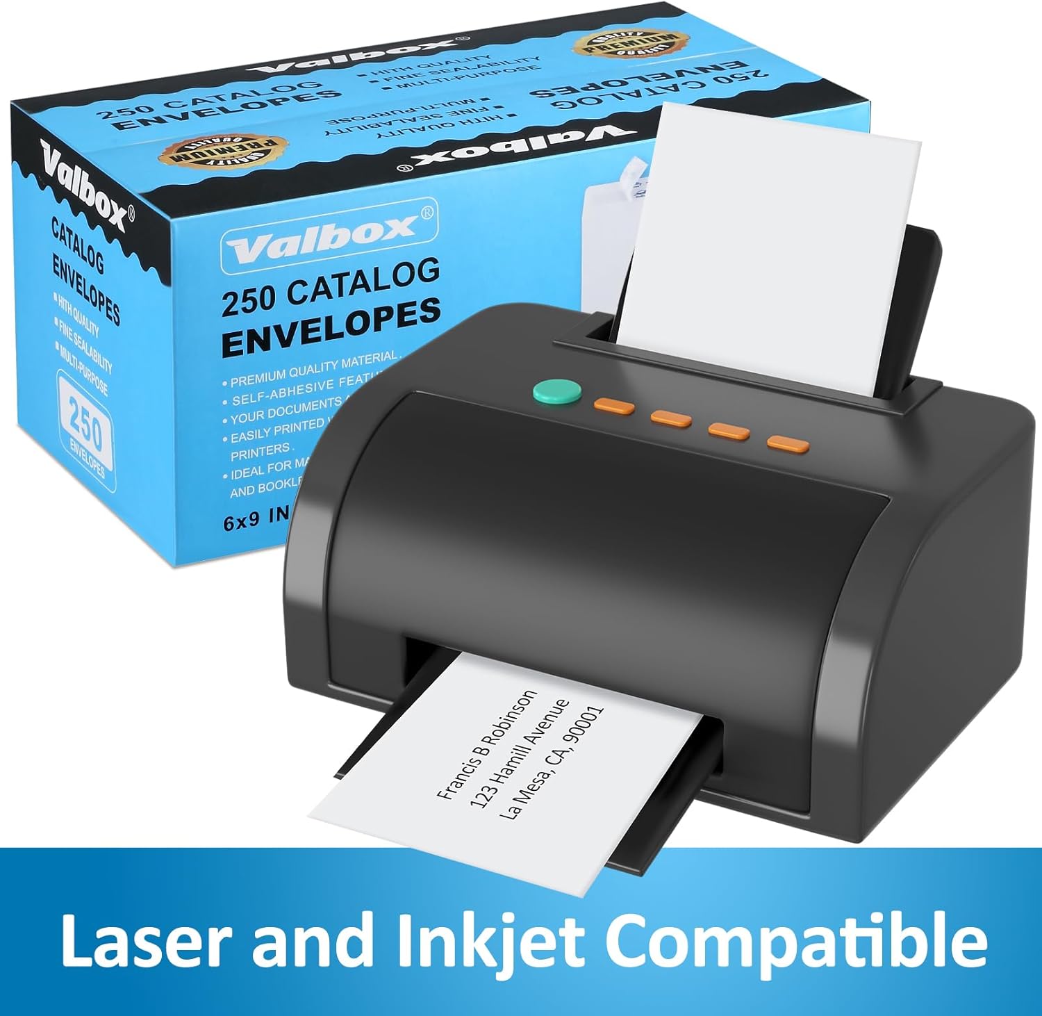 - ?�Printer Friendly?‘Self sealing catalog envelope is thick enough, therefore no need to worry that the ink will bleed out or go fuzzy when you run these through your laser or inkjet printers to print address, shipping labels and etc.