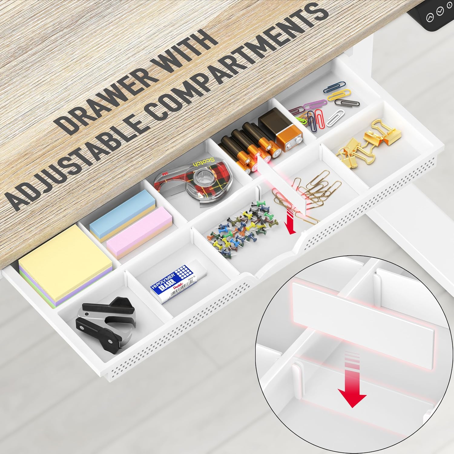 SHW 55 x 28 Inches Electric Height Adjustable Standing Desk with Drawer and Memory Preset, Maple