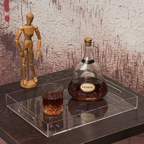 Clear Sturdy Acrylic Serving Tray with Handles-10x15Inch-Serving Coffee,Appetizer,Breakfast,Butler-Kitchen Countertop Tray-Makeup Drawer Organizer-Vanity Table Tray-Ottoman Tray-Decorative Tray