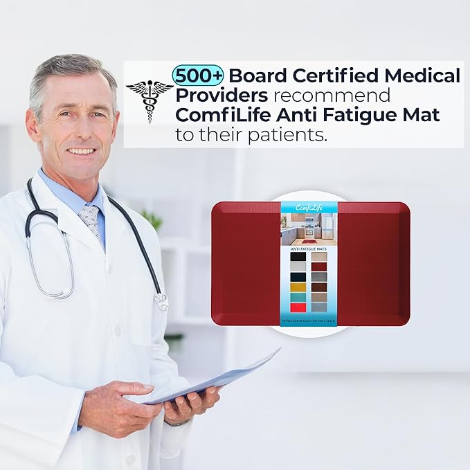 ComfiLife Anti Fatigue Floor Mat – 3/4 Inch Thick Kitchen Mats for Floor, Standing Desk Mat, Kitchen Rug – Comfort at Home, Office – Durable – Stain Resistant – Non-Slip Bottom (20" x 32", Red)