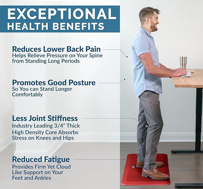 - Slip-Resistant and Stain-Resistant Surface: Stay safe and clean with our ergonomic mat that features a non-slip backing to keep it securely in place. The stain-resistant material is easy to clean and ensures your mat looks new, even with daily use.