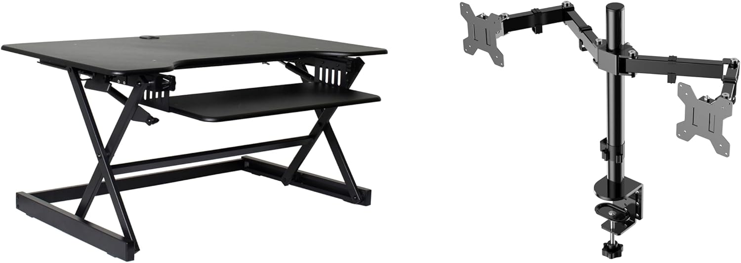 - STANDING DESK BUNDLE: Includes a 40" standing desk converter (R DADRB-40) and a Dual Monitor Arm (R DM2), extend your health benefits in comfort and reduce joint stress and strain while you work, provides long standing comfort.