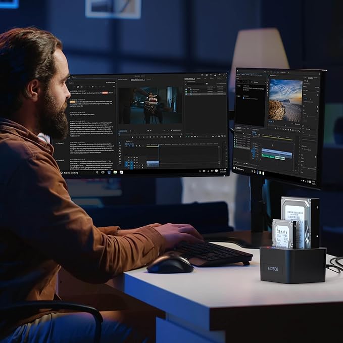 FIDECO External Hard Drive Docking Station, Hard Drive Dock for 2.5 and 3.5 inch SATA HDD SSD, HDD Docking Station with Dual Bay, USB 3.0 Hard Drive Reader, Support Offline Clone and UASP