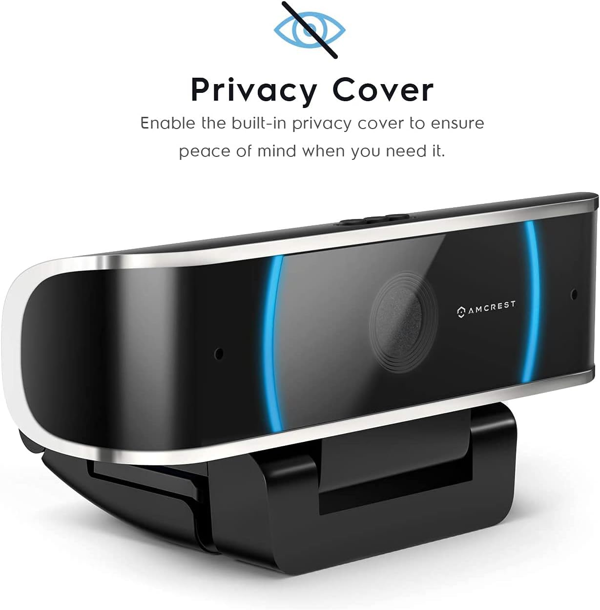 - The Amcrest 5-Megapixel UltraHD Webcam comes with a built-in Privacy Cover, the privacy covers your webcam when not in use, and prevents web hackers from spying on you. Provides security, privacy, and ease of mind.