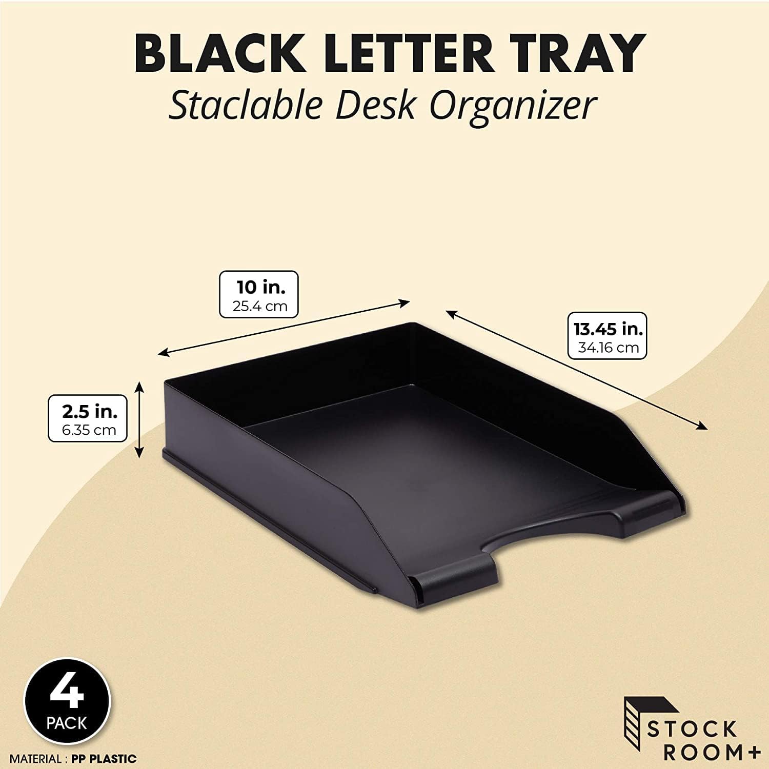 Stockroom Plus Letter Trays - 4-Pack, Black, 10 x 13.5 x 2.5 in - Stackable Paper Trays & Desktop File Organizer - Mail Organizer & Document Storage