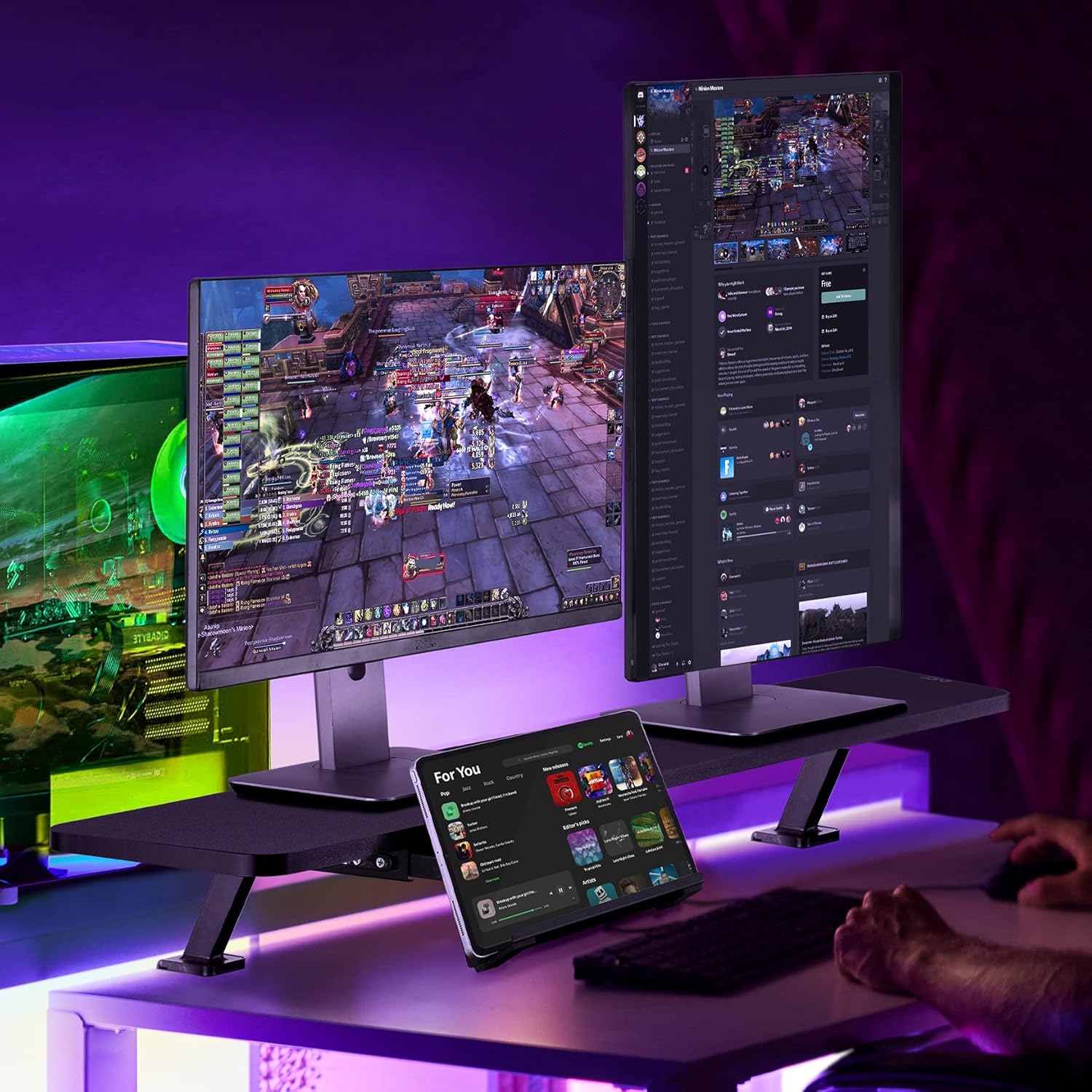 - Efficient Workspace Expansion - Maximize productivity without compromising desk space by creating an extra desk level with a large 39.4”x 10.2”(1000mm x 260mm) desk shelf that accommodates up to dual 32" monitors.