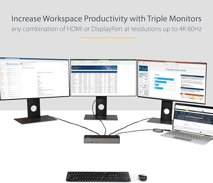 - COMPATIBILITY: SUPPORTS WINDOWS, MACOS, CHROMEOS, LINUX AND HARDWARE PLATFORMS INCLUDING INTEL, AMD AND THE APPLE M-SERIES, ENABLING THREE EXTERNAL DISPLAYS EVEN ON LAPTOPS THAT NATIVELY ONLY SUPPORT ONE; DRIVER INSTALLATION REQUIRED ON WINDOWS AND MACOS COMPATIBILITY: Supports Windows, macOS, ChromeOS, Linux and hardware platforms including Intel, AMD and the Apple M-Series, enabling three external displays even on laptops that natively only support one; Driver installation required on Windows and macOS