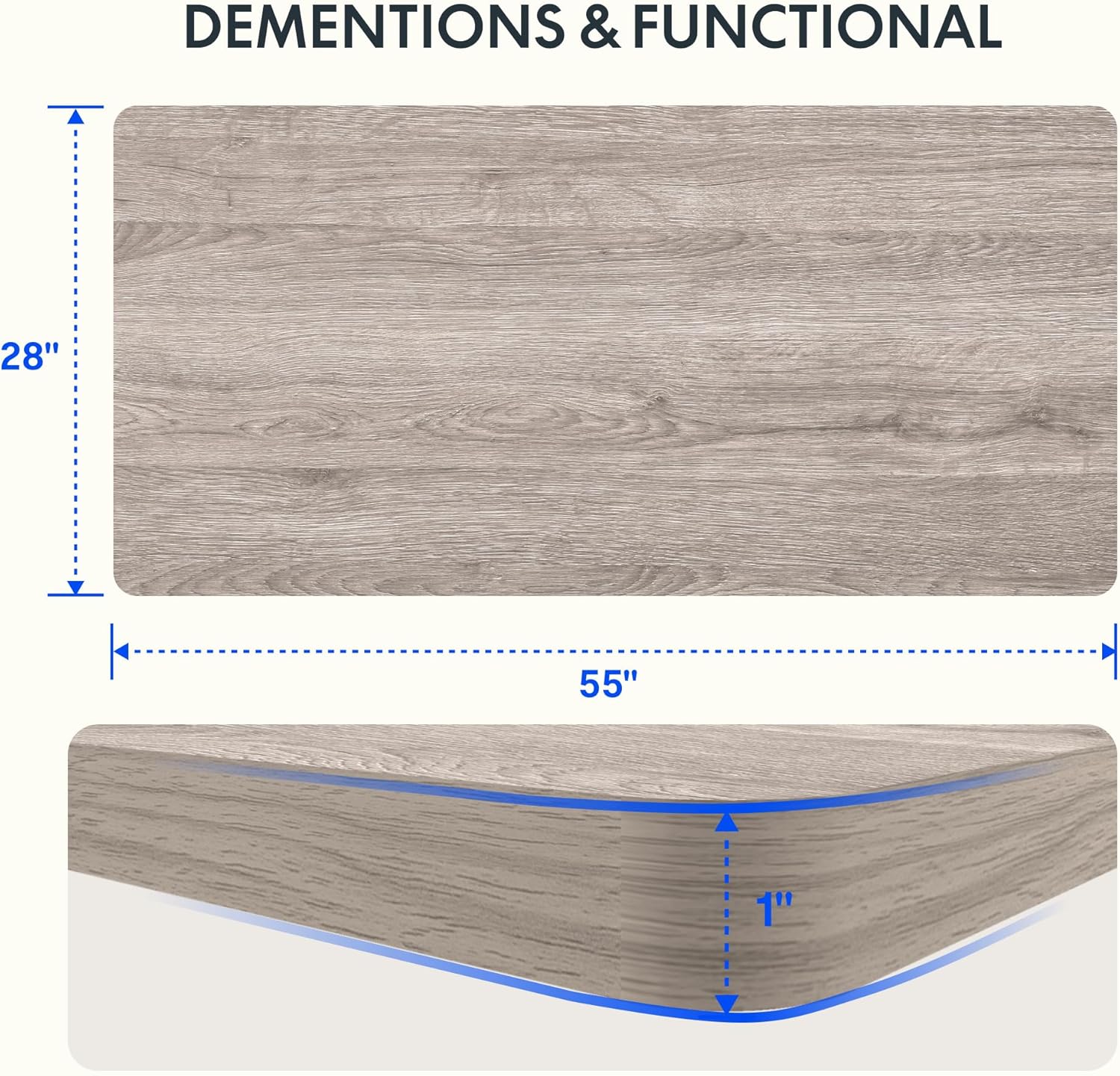 FLEXISPOT EN1 Whole Piece Standing Desk 55 x 28 Inches Stand Up Desk for Workstation and Home Office (Black Frame + Gray Wood Top, 2 Packages)