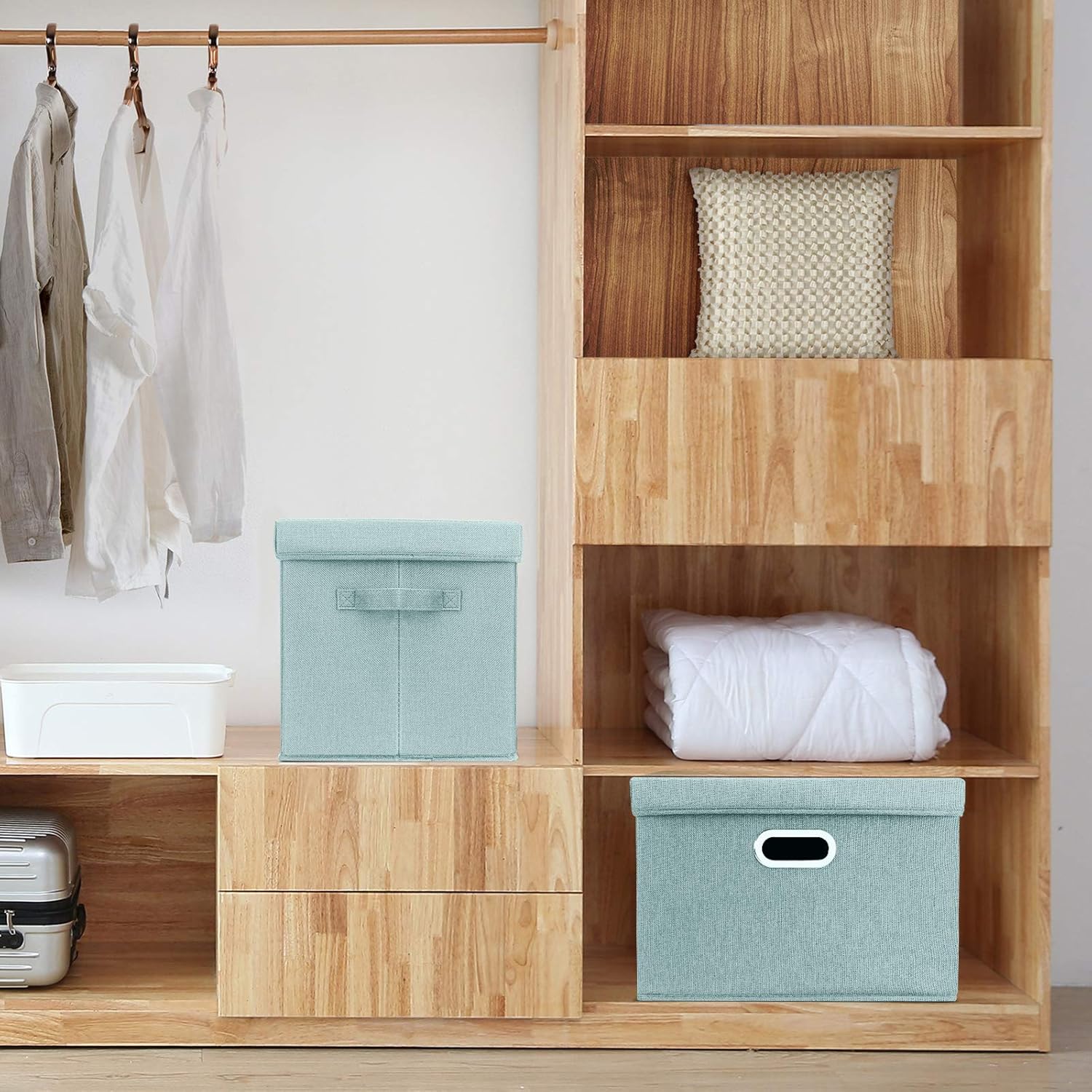 TYEERS Collapsible Storage Bins With Lids, Large Fabric Storage Boxes - 2 Pack - Aqua Spring