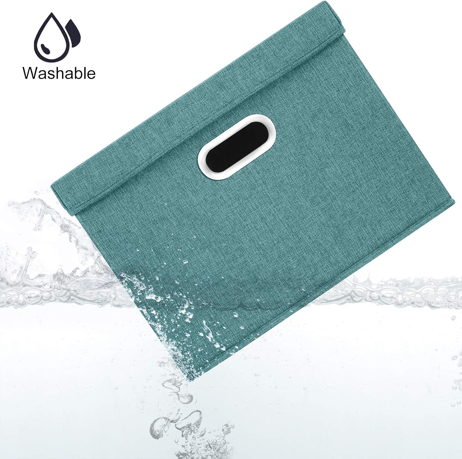 TYEERS Collapsible Storage Bins With Lids, Large Fabric Storage Boxes - 2 Pack - Aqua Deep