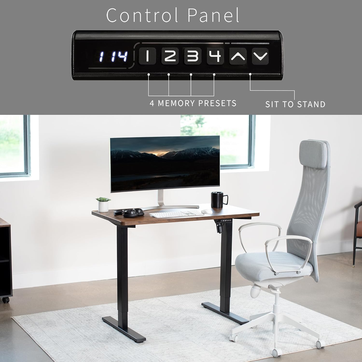 VIVO Electric 43 x 24 in Rustic Standing Desk, Memory Height Adjustment, 1B Series, One-Piece Vintage Brown Top, Black Frame, DESK-KIT-1B4N