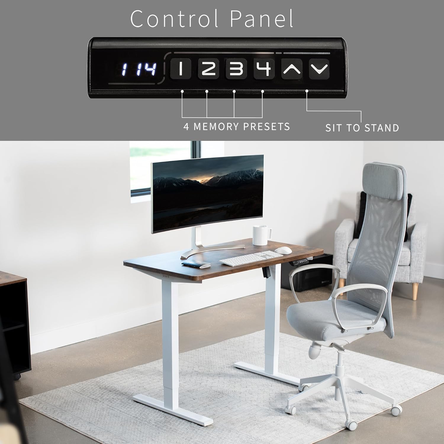 - Powerful Electric Motor: Enjoy a height range of 29.3" to 48.5" with this frame?™s powerful motor and strong legs using telescopic height adjustment. The easy-to-use push-button controller features 4 memory presets to save your desired heights