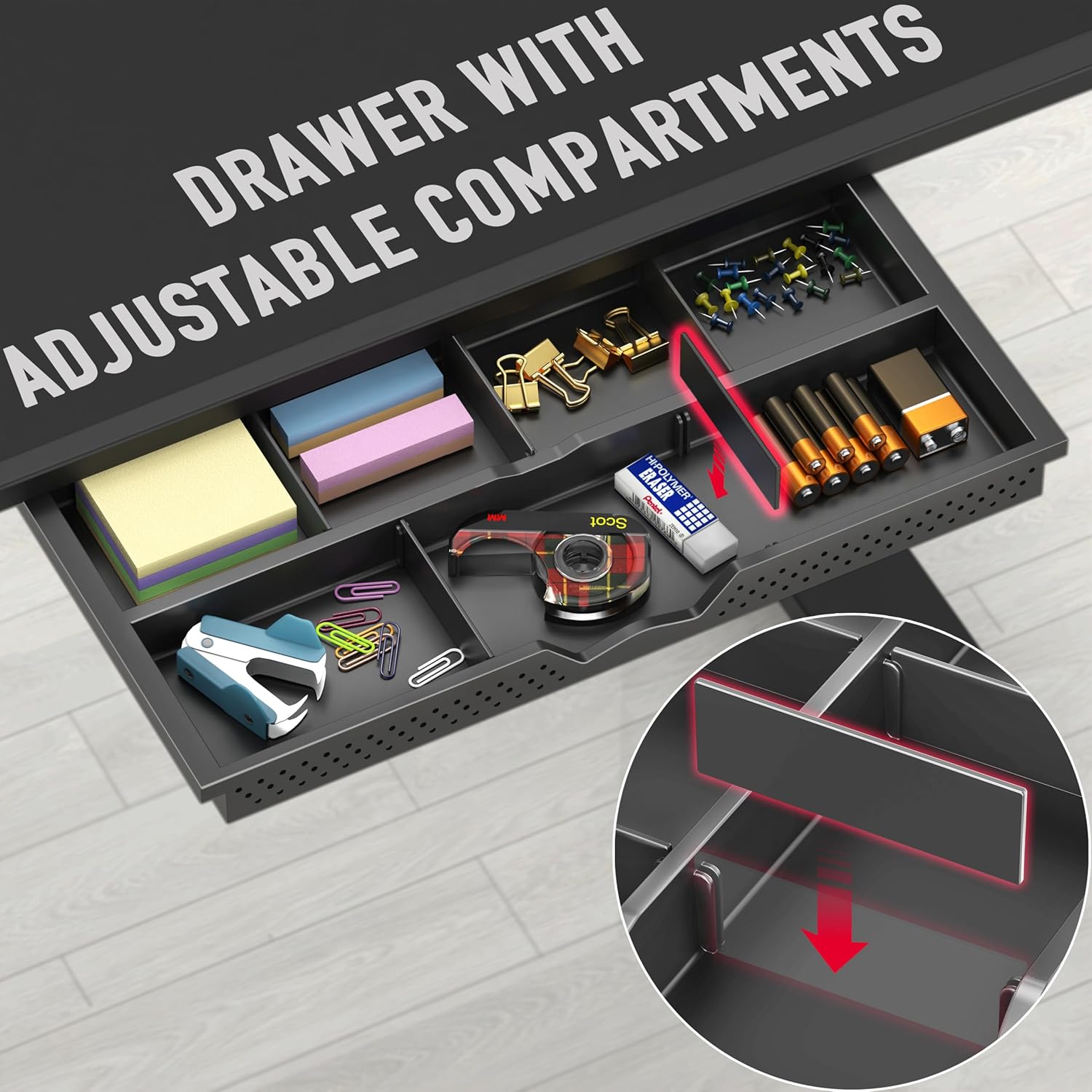 - Integrated Cable Management , Hooks and Drawer: Includes a built-in cable tray to neatly organize cords and reduce desktop clutter, maintaining a clean and professional workspace.