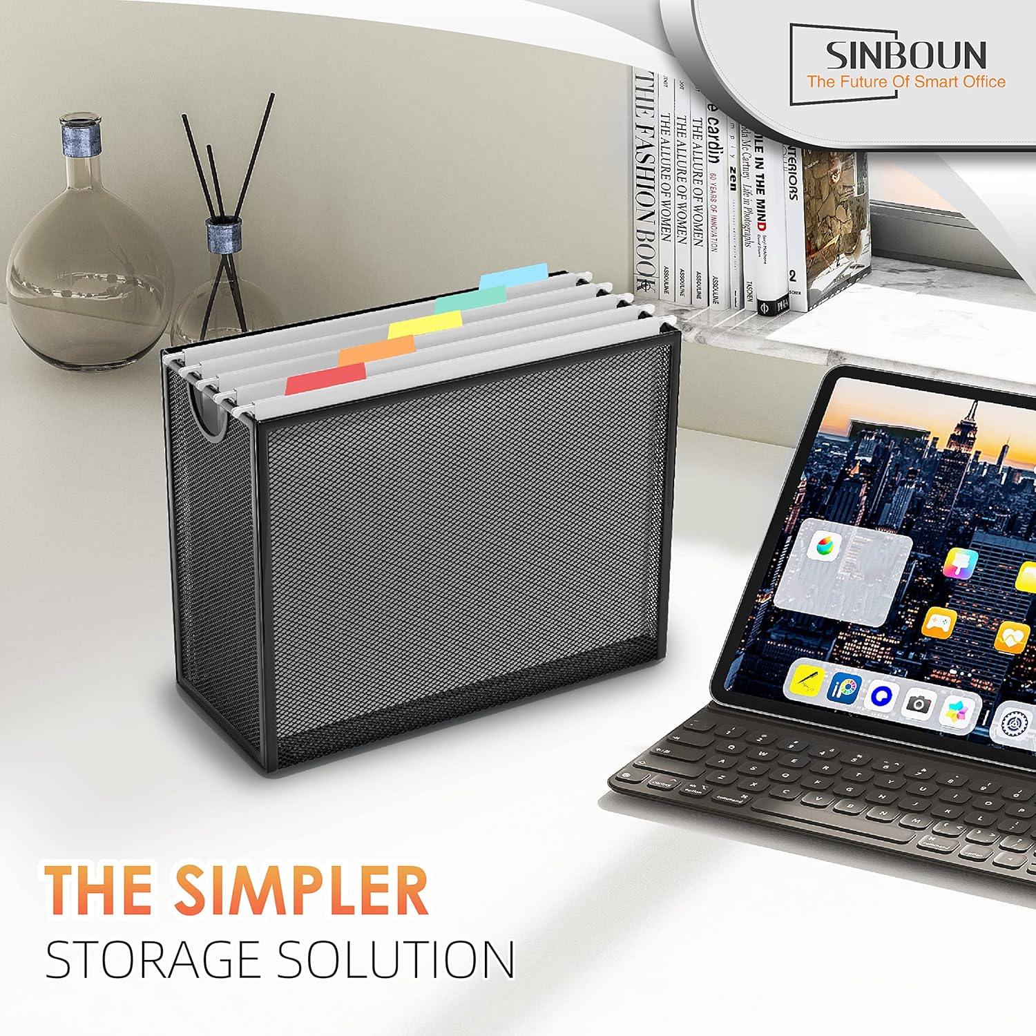 Sinboun Hanging File Organizer Letter-Size File Holder Filing Box Includes 5 Hanging Folders - Metal Mesh Magazine Letter Storage Cabinets File Cart for Office Home School, No Assembly Required