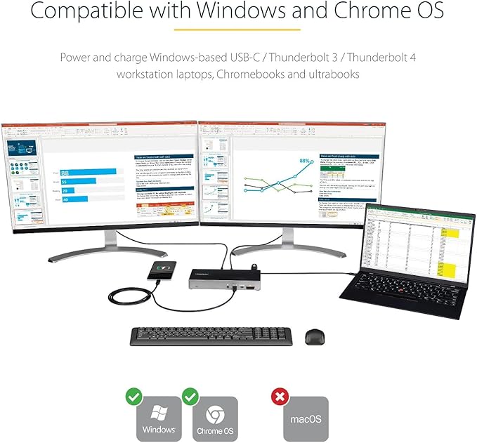 - 100W POWER DELIVERY CHARGING: Power & charge Windows-based USB-C/Thunderbolt 3 workstation laptops, Chromebooks, ultrabooks including Lenovo X1 Carbon, ThinkPad P Series, Dell Latitudes, Precision, XPS 15, HP Spectre, and ZBook