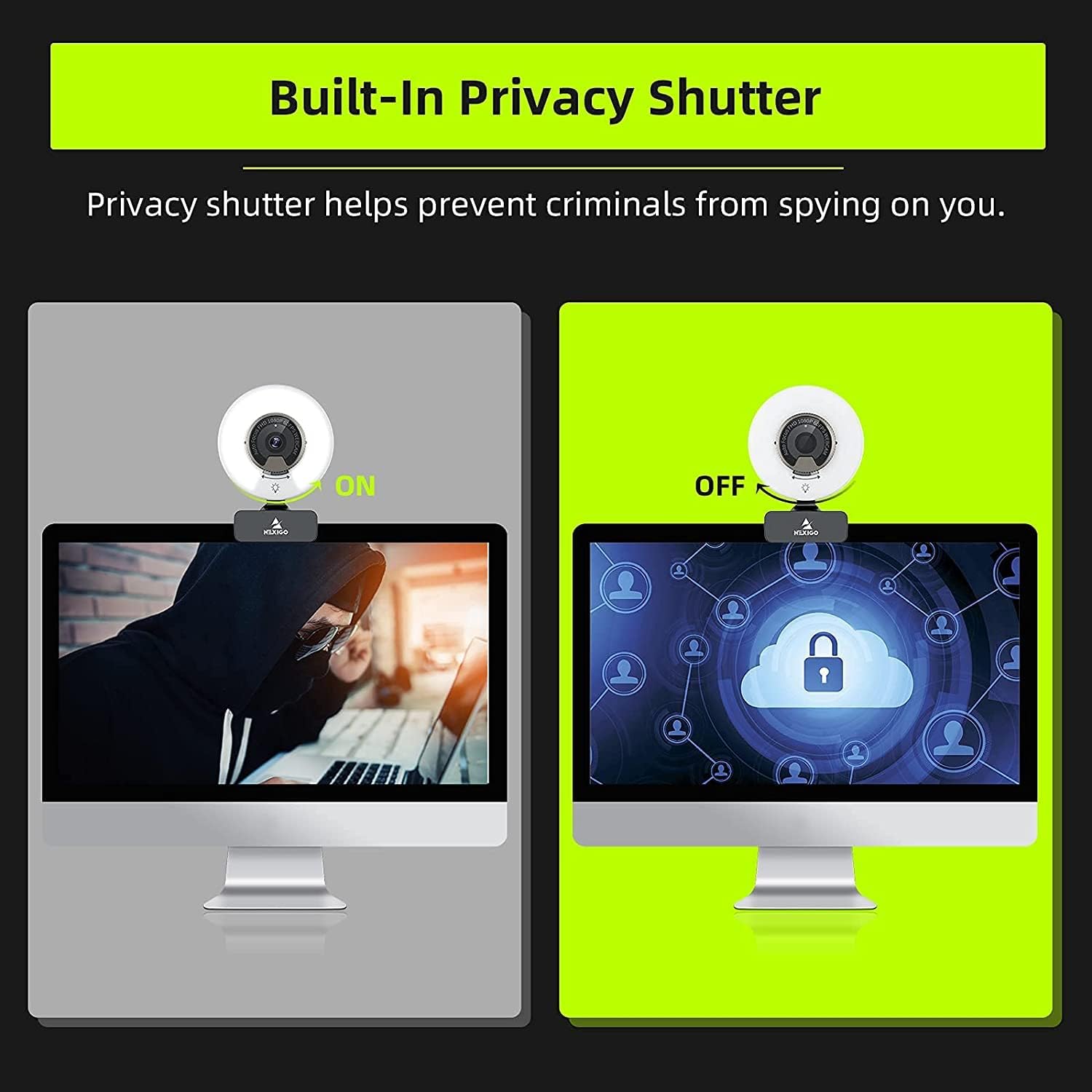 - Webcam with Built-in Privacy ShutterThe NexiGo webcam works with USB A prots. NO additional driver required. The built-in privacy cover allows you to enjoy safe digital web life when not in use and prevent hackers from spying on you. It is perfect to provide privacy, security, and peace of mind to individuals, groups, organizations, companies, and governments.