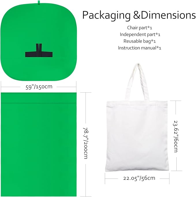 - LARGE AREA:multifunctional combined photography background, compatible with home office and full-body portrait shooting. The size of the green screen chair office chair is 60×60 inches, and the combined size is 4.92×9.51 feet