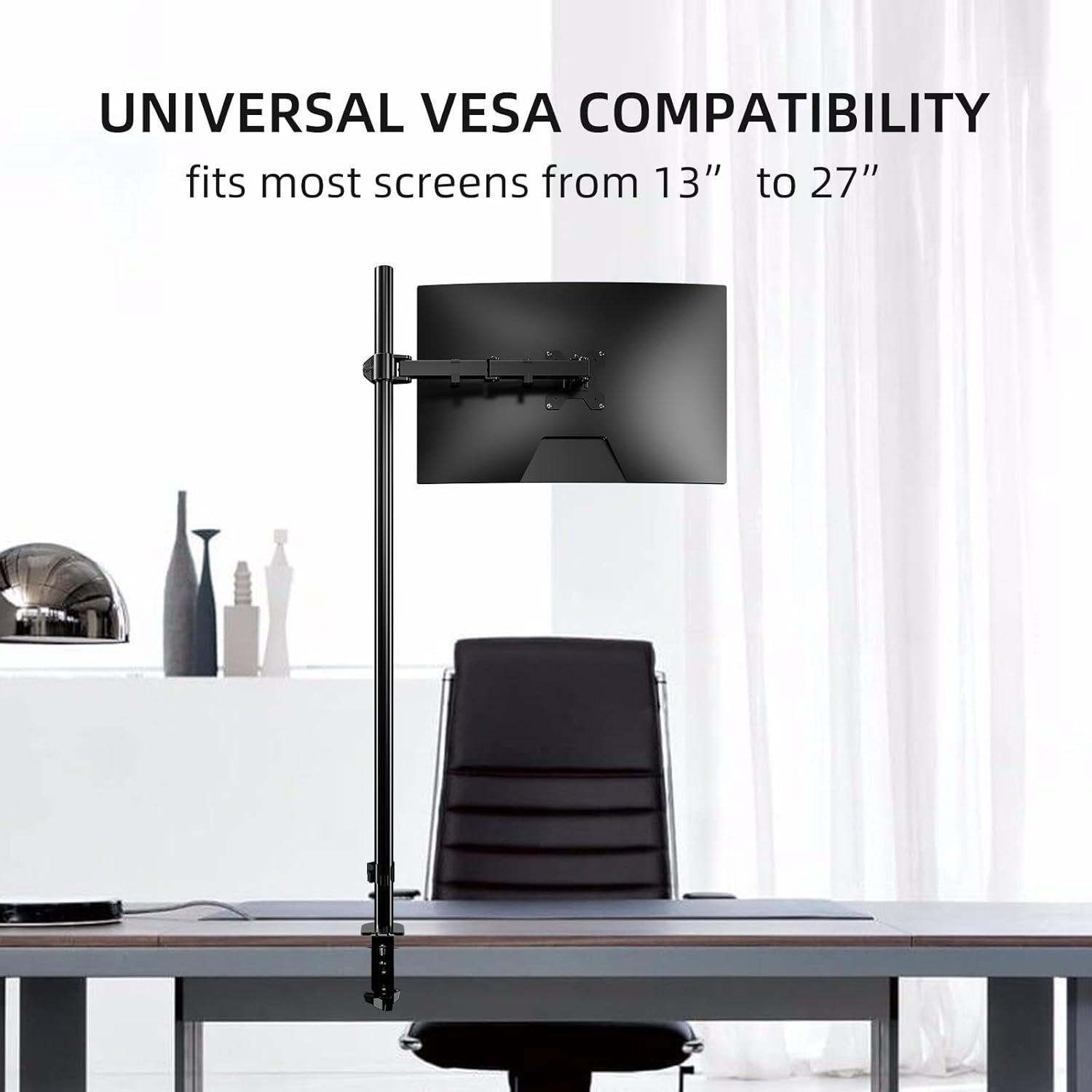 - EASY TO ASSEMBLE: Includes all necessary accessories and a manual with this adjustable vesa mount. The installation can be completed within 10 minutes. Note: Our screen mount clamp cannot be used for desks made of PB, MDF or GLASS.