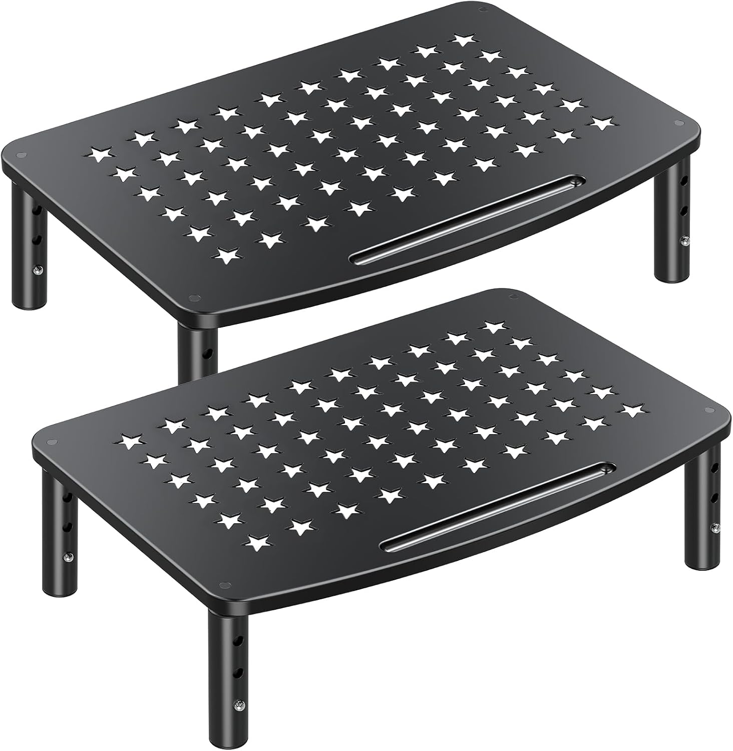 - Easy to Assemble and Adjust: The metal monitor stand is very easy to assemble. You just need to screw 4 legs with the platform in one minute. Press the button on each leg and pull the leg down or up to adjust the height as desired.
