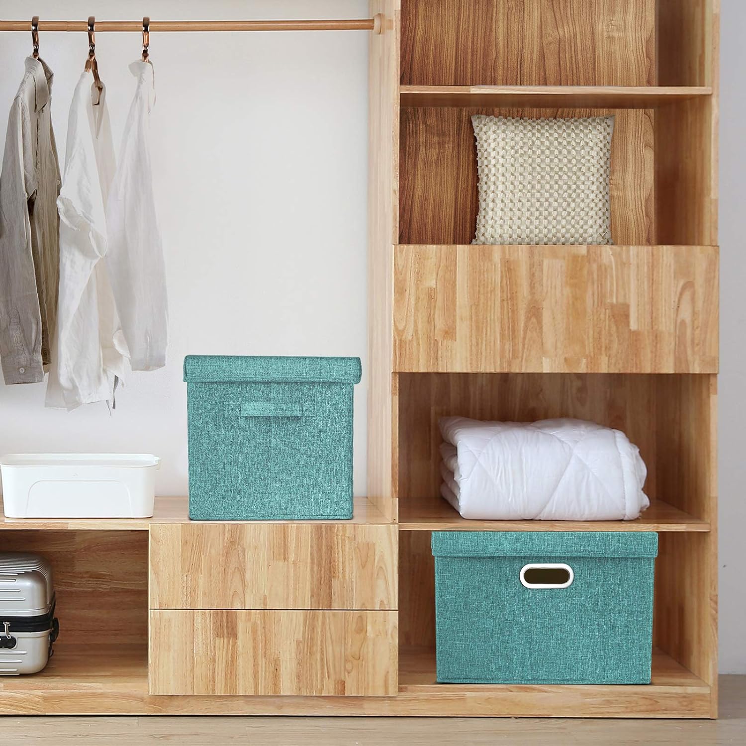 TYEERS Large Storage Bins with Lids, Collapsible, Washable, Fabric Storage Boxes for Organizing, 17.3x11.8x11.4 inches, 3 Pack, Aqua Deep