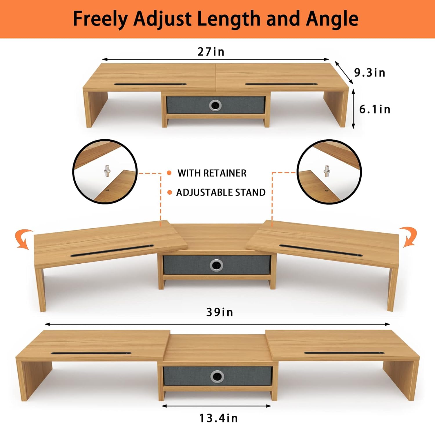 - 【Perfect Storage with Drawer 】Our computer monitor riser includes 13 inches practicality slide-out drawers, for storing items like post-it notes, writing utensils and mobile devices.