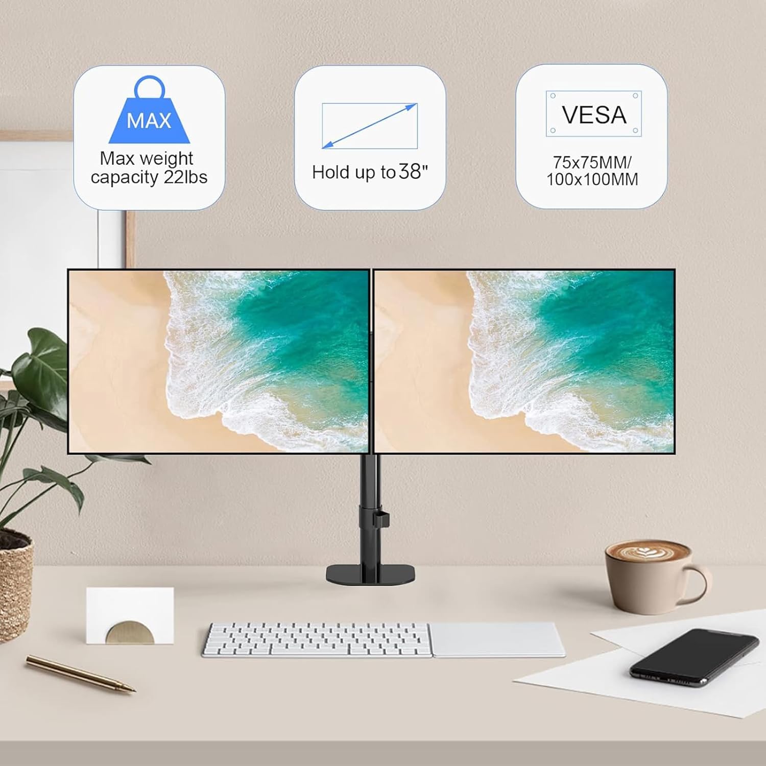 Pholiten Dual Monitor Stand,Heavy Duty Adjustable Monitor Desk Mount for 2 Screens up to 38Inches,Dual Monitor Arm with Height Adjustable Tilt Swive Rotate,Holds up to 22 lbs