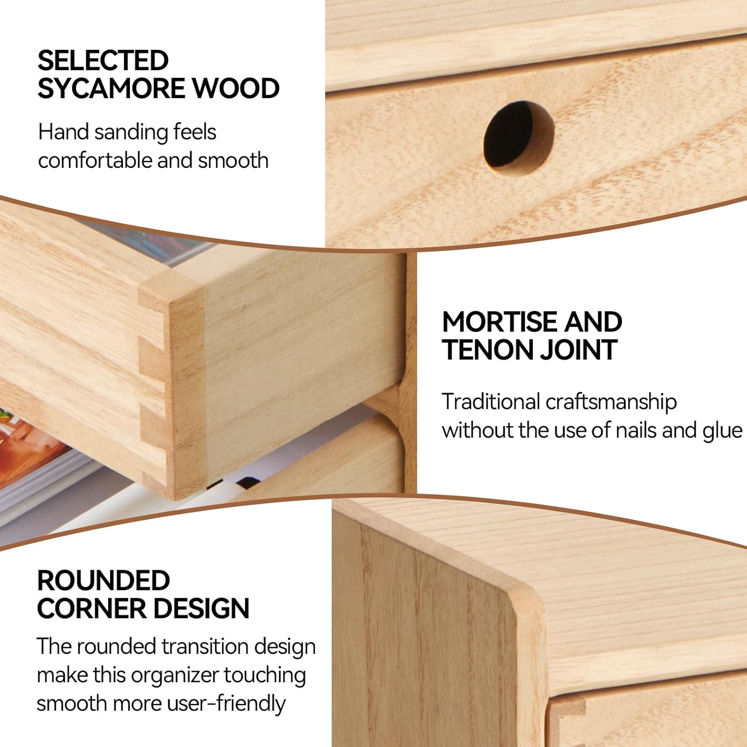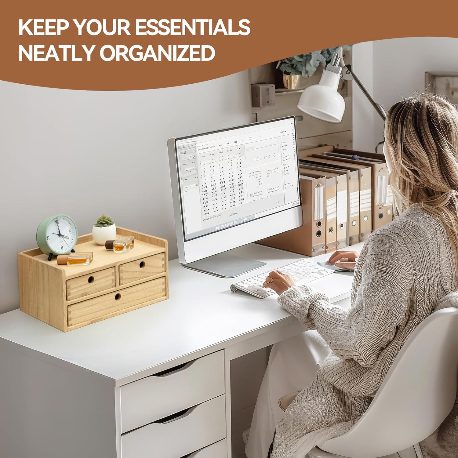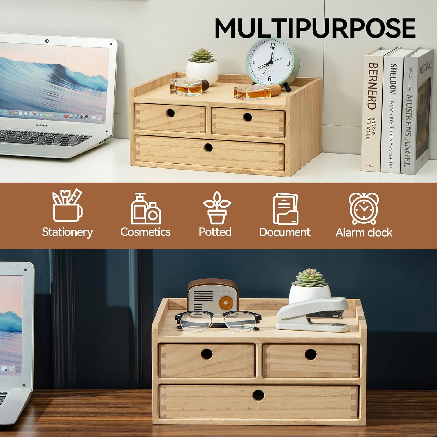 KIRIGEN Wood Organizer Shelf with 3 Drawers for Home Kicthen Decor Office Supplies Desktop Cabinet for Drawer Organizer - Desk Accessories Storage Box -Countertop Shelf Natural(DT2D3C-NA)