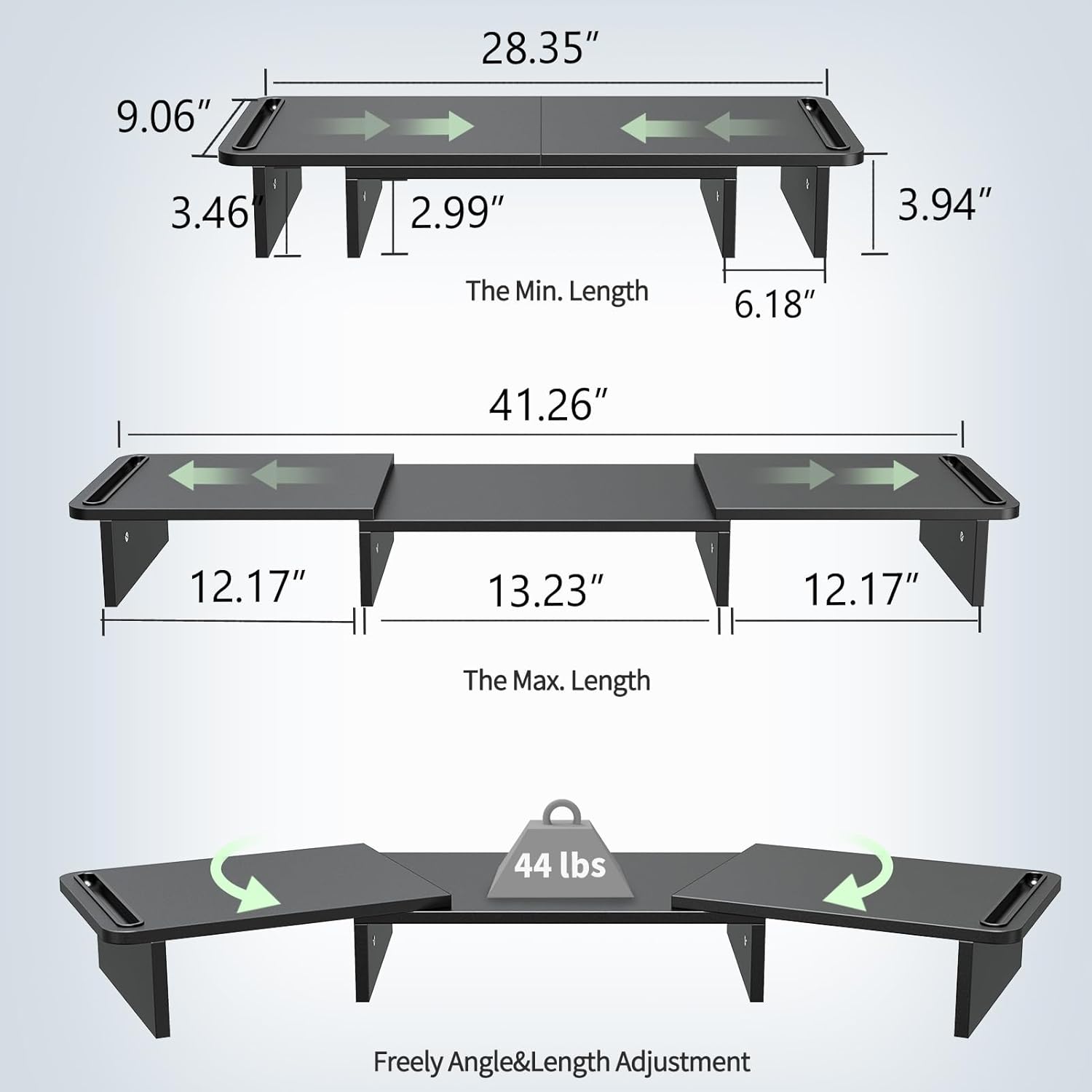 Zimilar Dual Monitor Stand Riser, Monitor Stand with Adjustable Length and Angle, Wood Monitor Stand for Desk, Monitor Riser for 2 Monitors with Storage Space