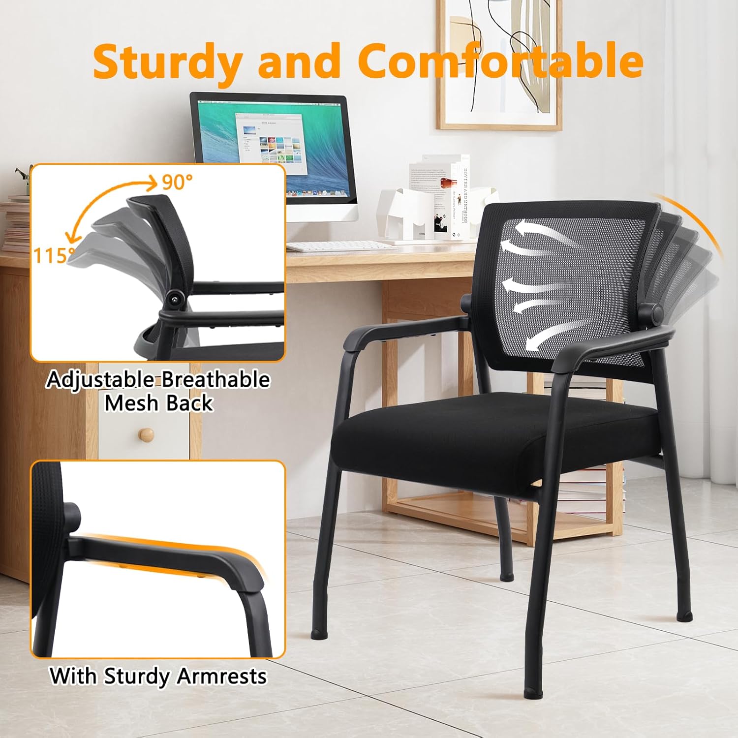 - 【ALL DAY COMFORT】: Office guest chair with 2.7” soft and thick foam cushion brings you a comfortable experience; the breathable mesh material of the backrest keeps you from feeling hot and stuffy in summer; the armrest design is easy to move and rest your arms; Moreover, NO wheels office chair design is safe and stable, making it easier for you to engage in work, study or rest.