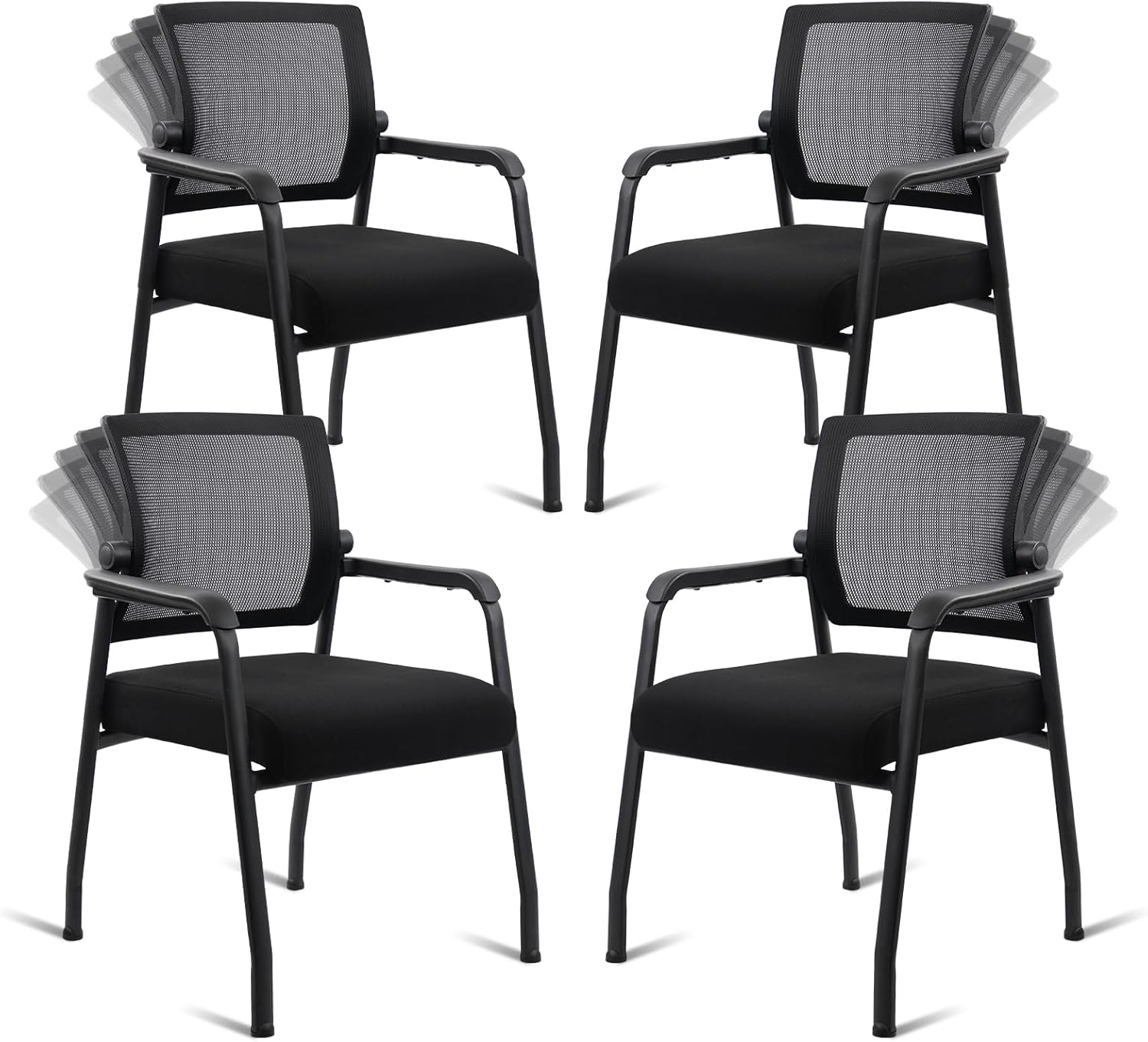 Desk Chair No Wheels with Adjustable Mesh Backrest, Arm Chair with Ergonomic Lumbar Support and Thickened Seats Cushion, Waiting Room Chairs for Office School Church Guest Reception, 4PACK
