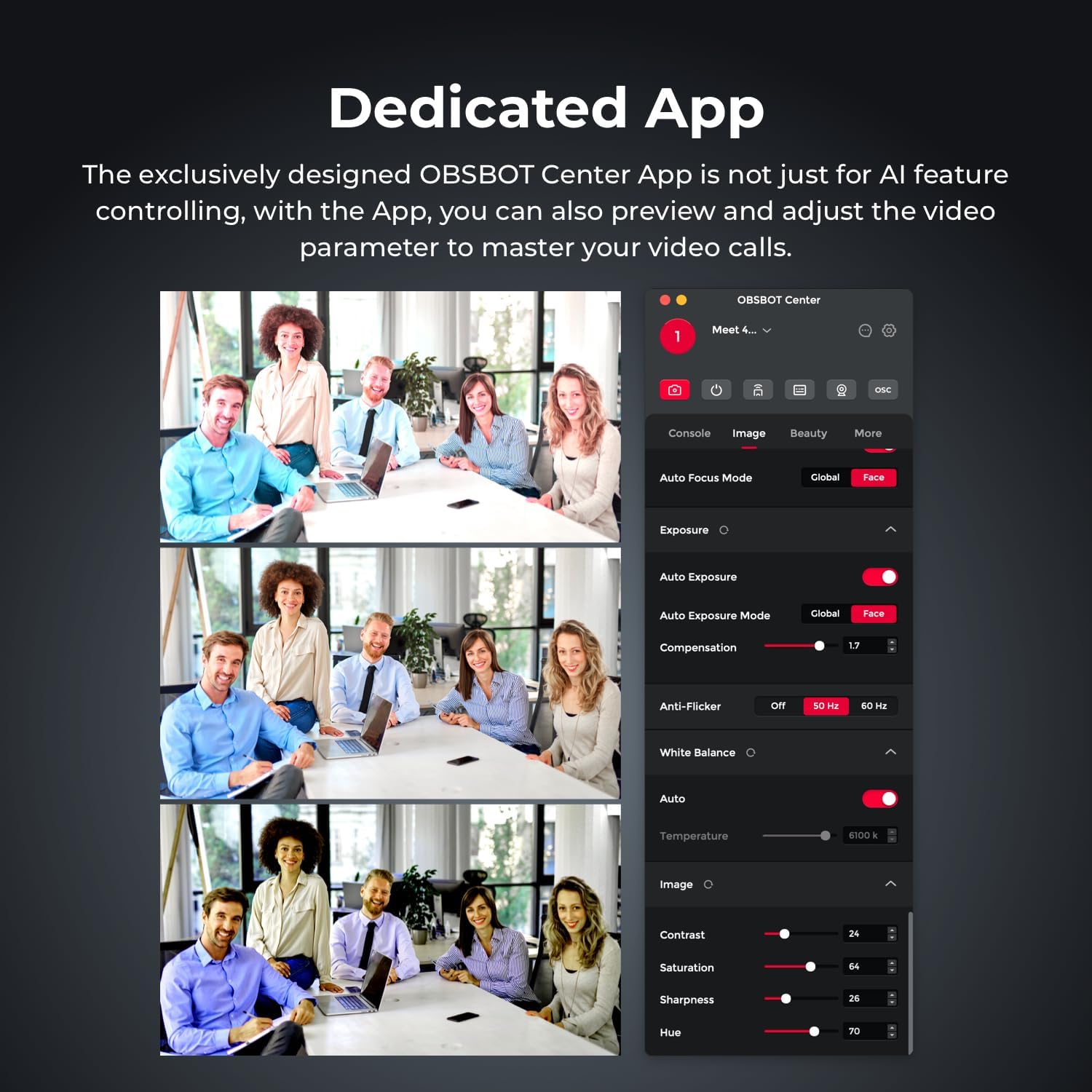 OBSBOT Meet AI-Powered 4K Webcam, AI Framing & Autofocus, Webcam with Microphone, Background Bokeh, 60 FPS, HDR Low-Light Correction, Beauty Mode, Webcam for PC, Streaming, Conference, Gaming, etc.