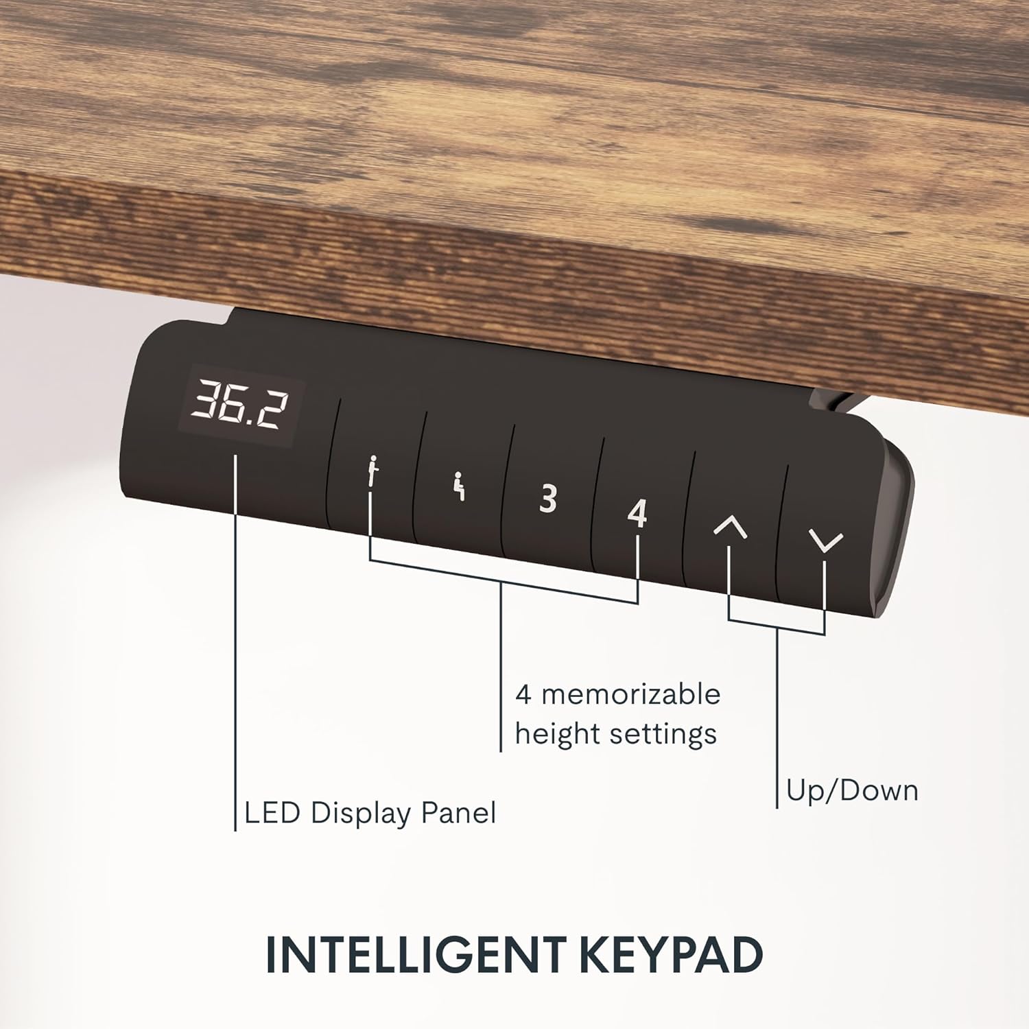 - ?�PROGRAMMABLE CONTROLLER??Easily set your preferred desk heights using the convenient control panel. Program up to four different heights into the memory buttons, allowing you to switch between sitting and standing positions effortlessly.