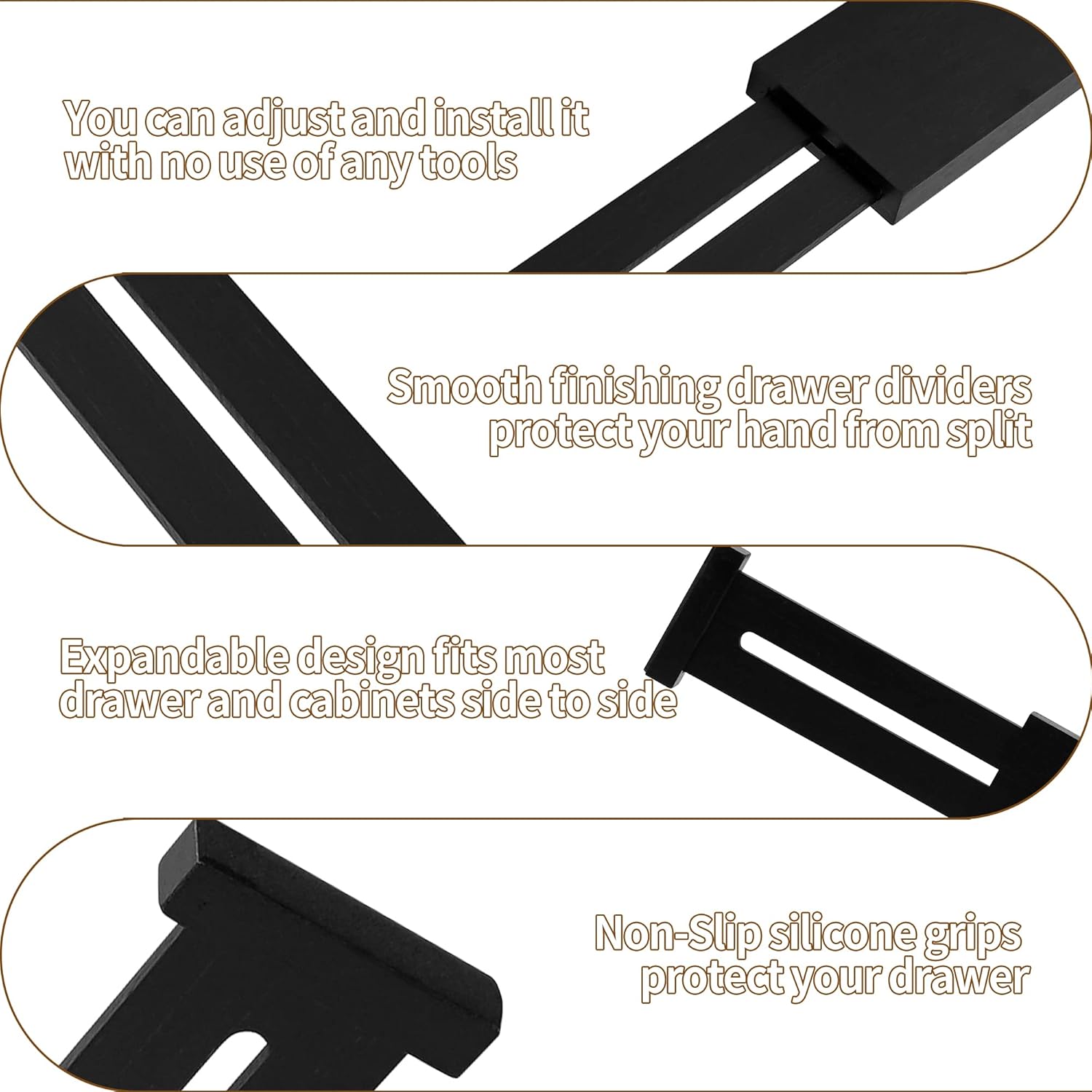 - Well Design and Bamboo Material: Both ends of the divider are applied with non-slip pads to protect your drawer and also the organizer itself. Drawer dividers are made of organic moso bamboo, and are durable and beautiful