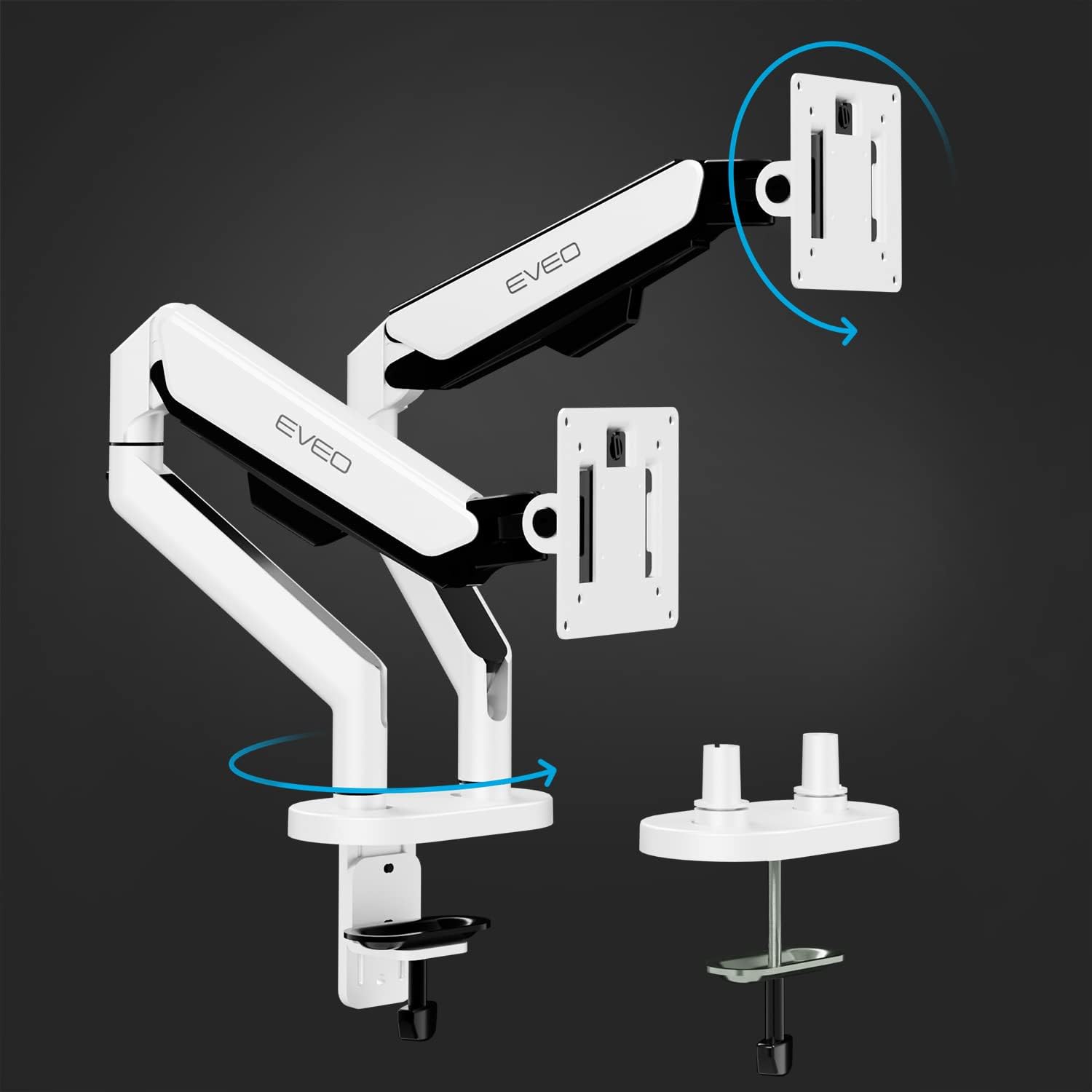 EVEO Premium Dual Monitor Mount 14"-35” Dual Monitor Arm VESA Bracket Adjustable Height Gas Spring Dual Monitor Stand, Screen Full Motion Dual Monitor Arm-Computer Monitor Stand for 2 Screens - White