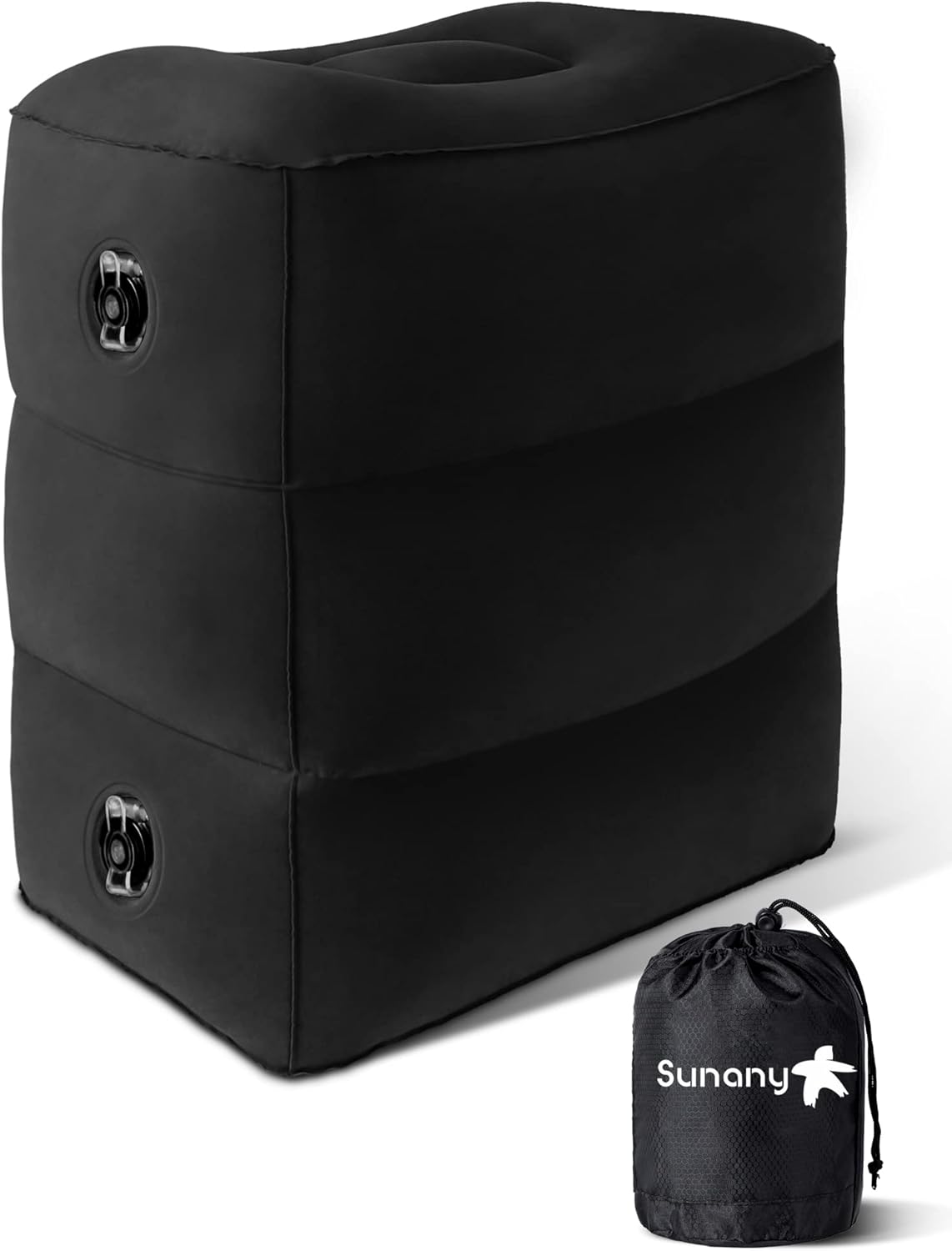 Sunany Inflatable Foot Rest Pillow , Adults Airplane Travel Pillow-Adjustable Height Cushions,for Kids to Sleep While Traveling,Suitable for Office, Home and Any Travel(Black)