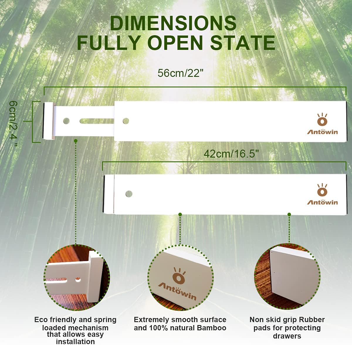 ANTOWIN Expandable Bamboo Drawer Dividers, Drawer Separators,17-22 inches Adjustable Spring-loaded Organizer for Large Utensil, Clothes, Tools Drawers, 6Pack (White)
