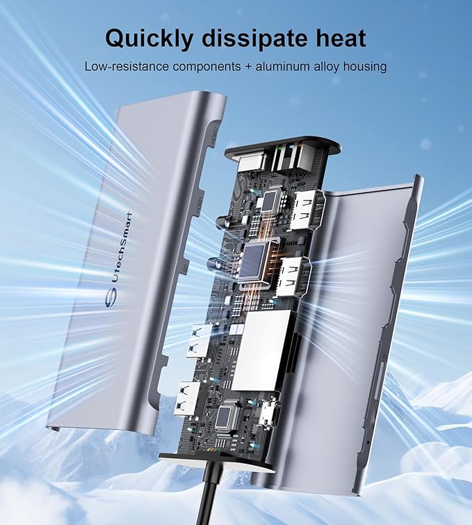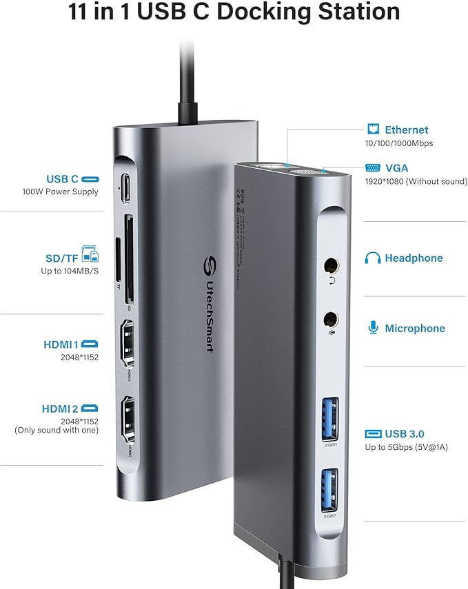 - [Widely Compatible for MacOS & Windows] - UtechSmart USB docking station is compatible for Windows 10 or later, MacOS 11+ systems, devices with Thunderbolt 3/4, USB and USB-C. Nomatter your laptop or desktop‘s interface is USB A, Type C or Thunderbolt, you can use our dock for multifunctional expansion. (For computers with USB A ports, do not support the USB 2.0 and earlier versions)