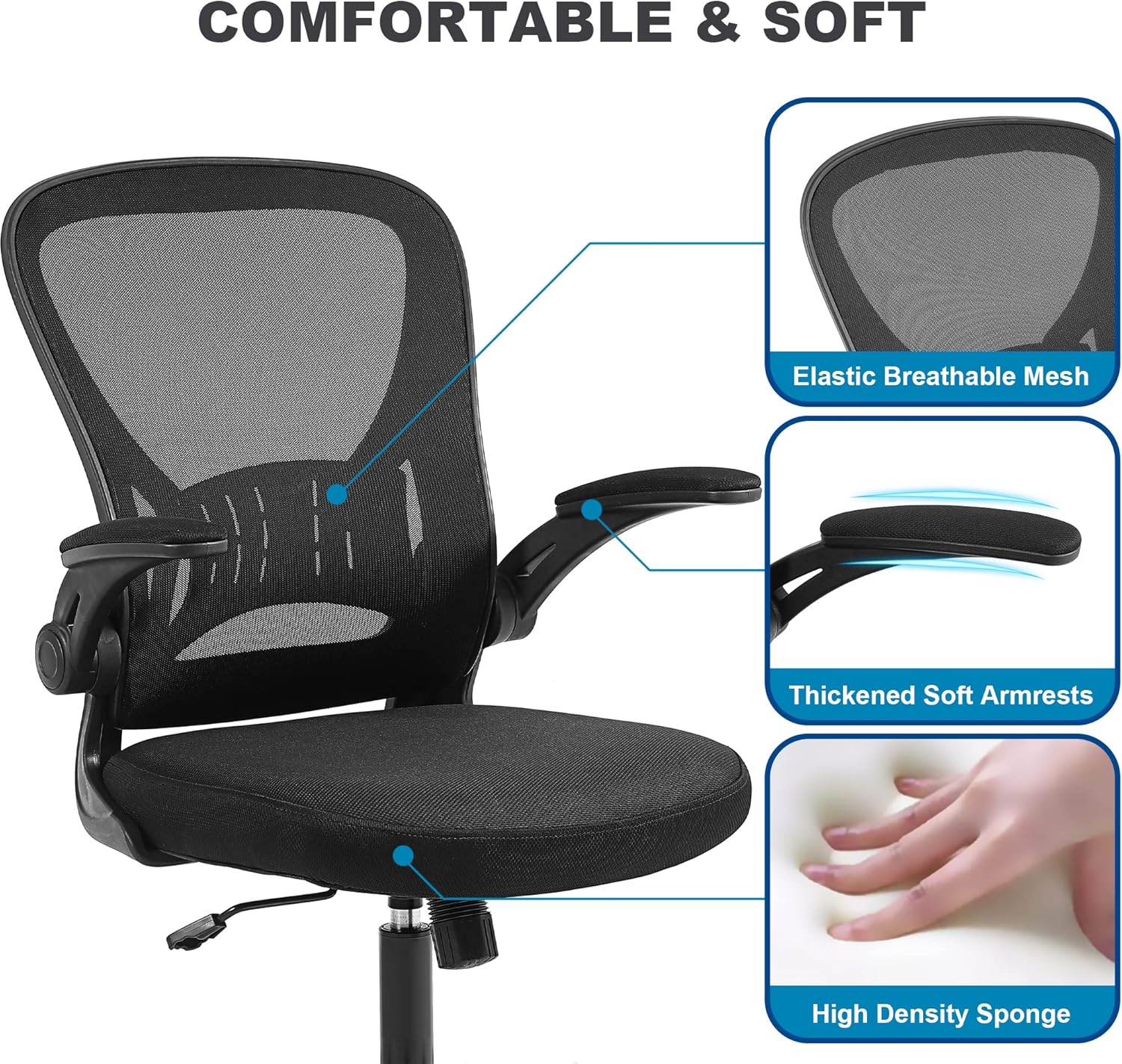 Mesh Office Chair, Ergonomic Home Office Desk Chairs with Flip-up Arms and Lumbar Support, Height Adjustable, Black