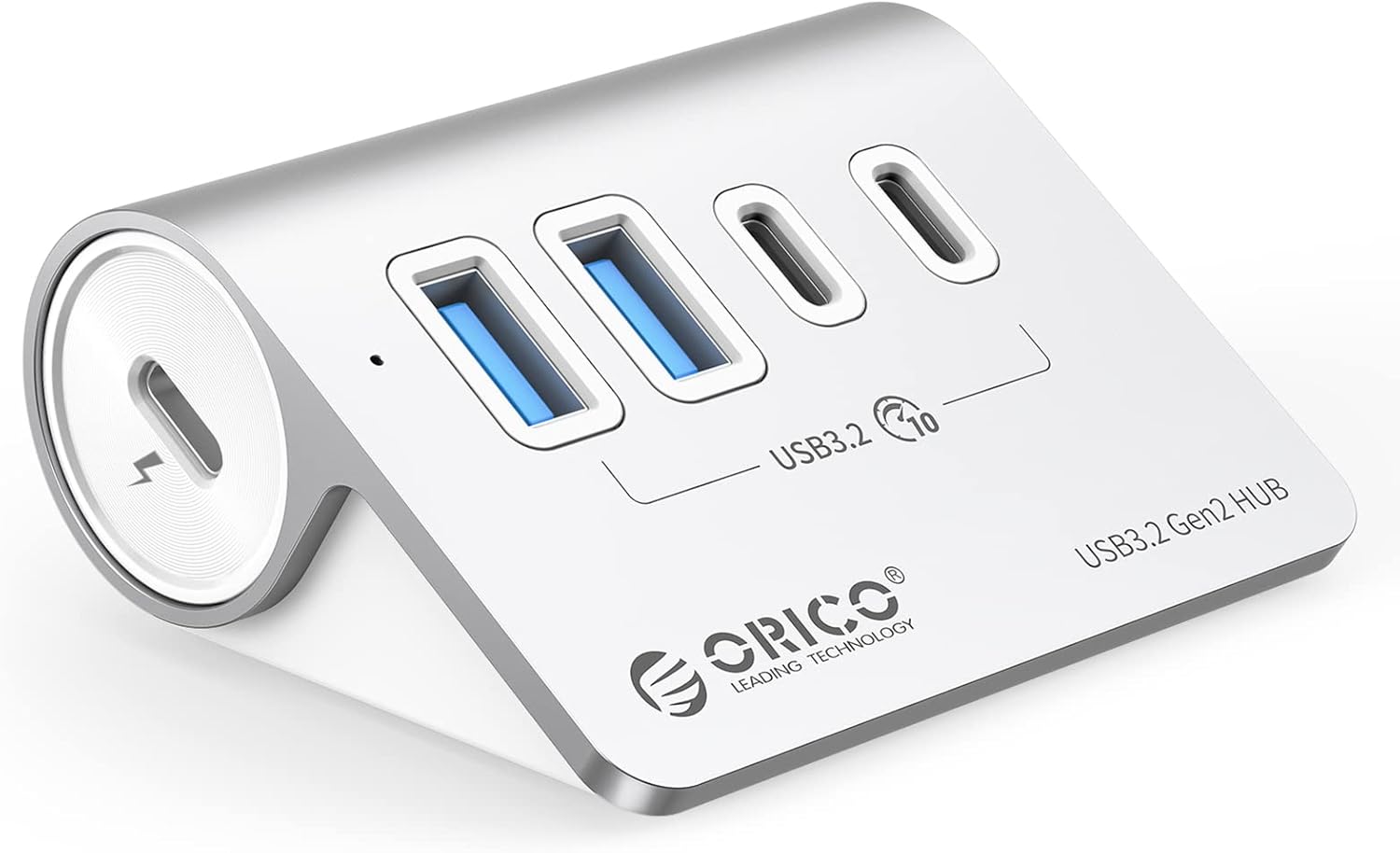 ORICO 4-Port USB 3.2 Gen 2 Hub 10Gbps with 2 USB A +2 USB C, Aluminium Hub with 1.64Ft USB-C Cable and USB-A Adapter USB Splitter for iMac, MacBooks, Mac mini