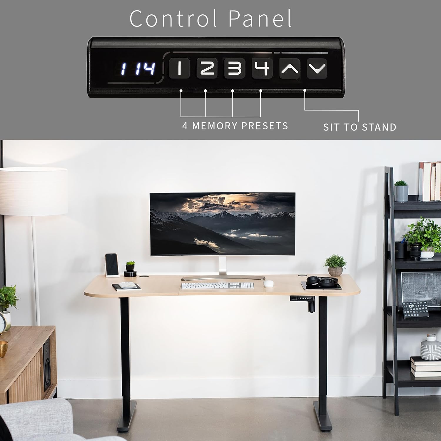VIVO Electric 63 x 32 in Standing Desk, Memory Height Adjustment, 1B Series, Light Wood Top Black Frame, DESK-KIT-1B1C