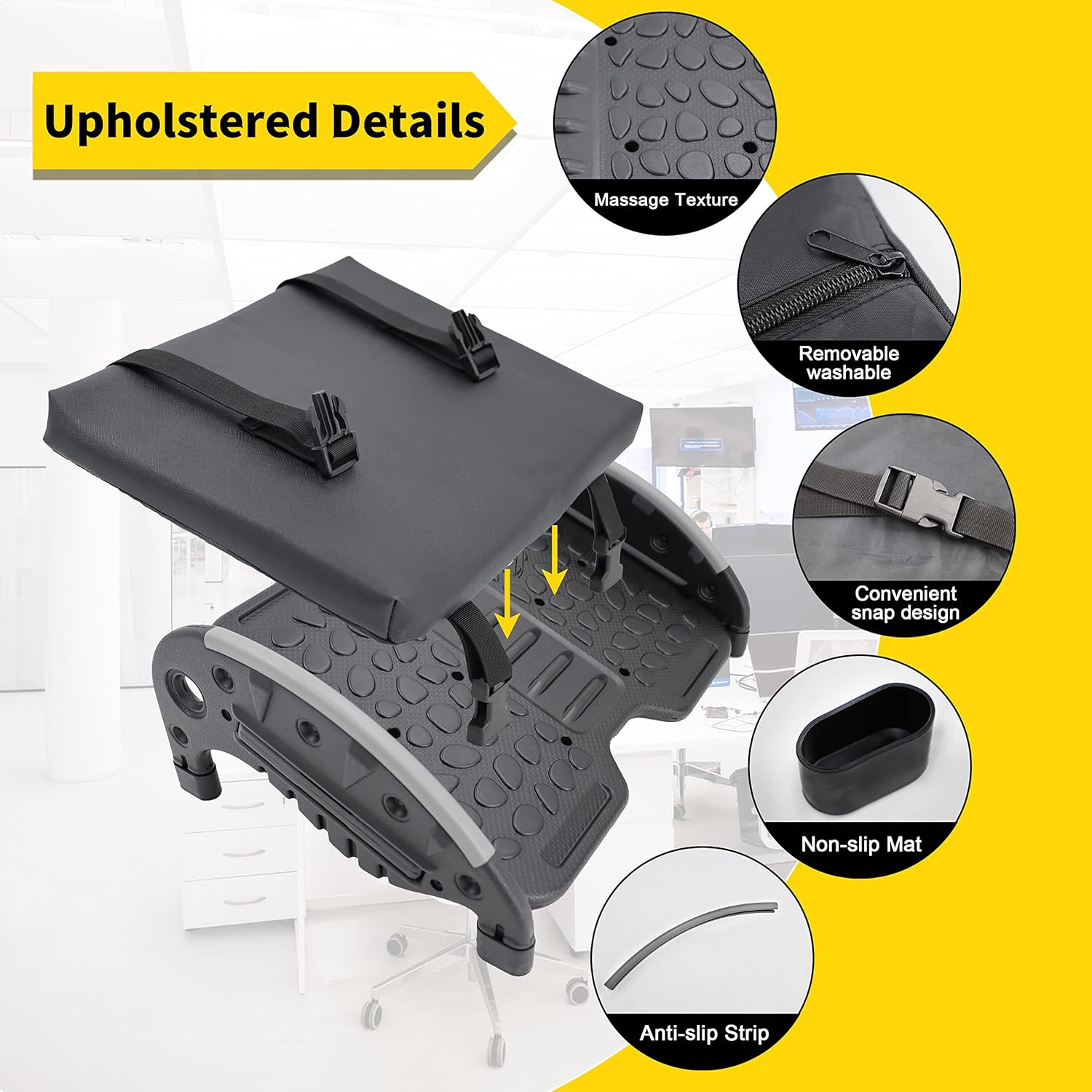 - [Product features]: ERGONOMIC FOOTREST, simple operation, Product can be used in two states, increase the product use experience, massage the textured surface,The product is also equipped with removable soft pad,Increase the sense of using experience
