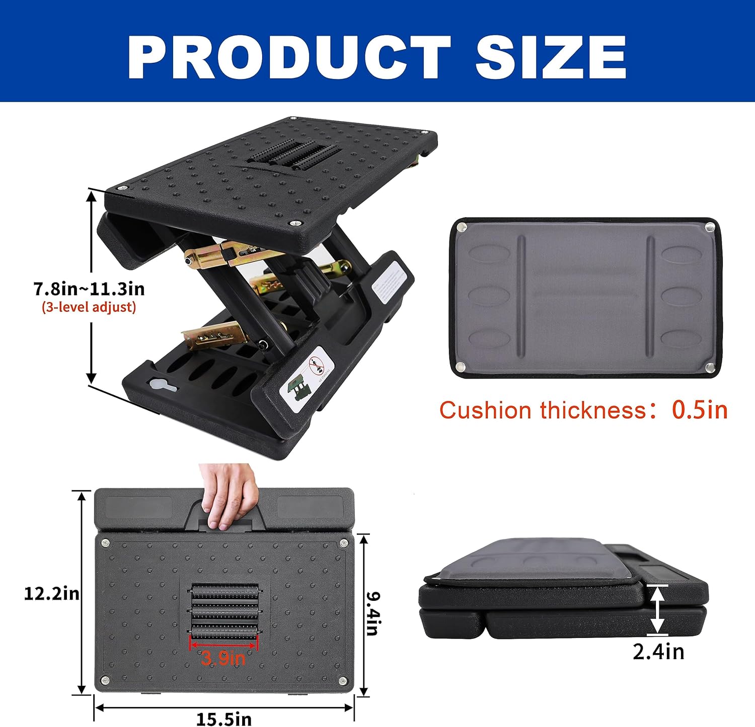 - Massage surface roller: Adjustable Foot Rest textured surface and massage roller of foot rest under desk for office use provide an additional relaxation feature. The massage roller can effectively relieve foot fatigue and soreness.office foot rest can be folded into a mini size LxHxW 40×32×6cm/15.7"x12.6 "x2.36", lightweight at 5.9 lbs, easy to carry.Portable Foot Rest