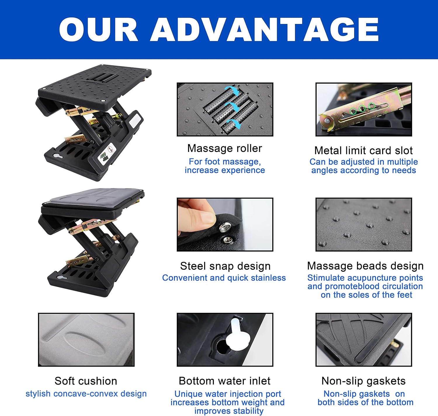 - Innovative and versatile design: The Foot Stool Under Desk is a revolutionary product designed to improve the quality of life. adjustable foot rest can be used in various applications, including at the office Footrest and Under Desk Footrest. desk footrest foldable design makes it portable and easy to store.