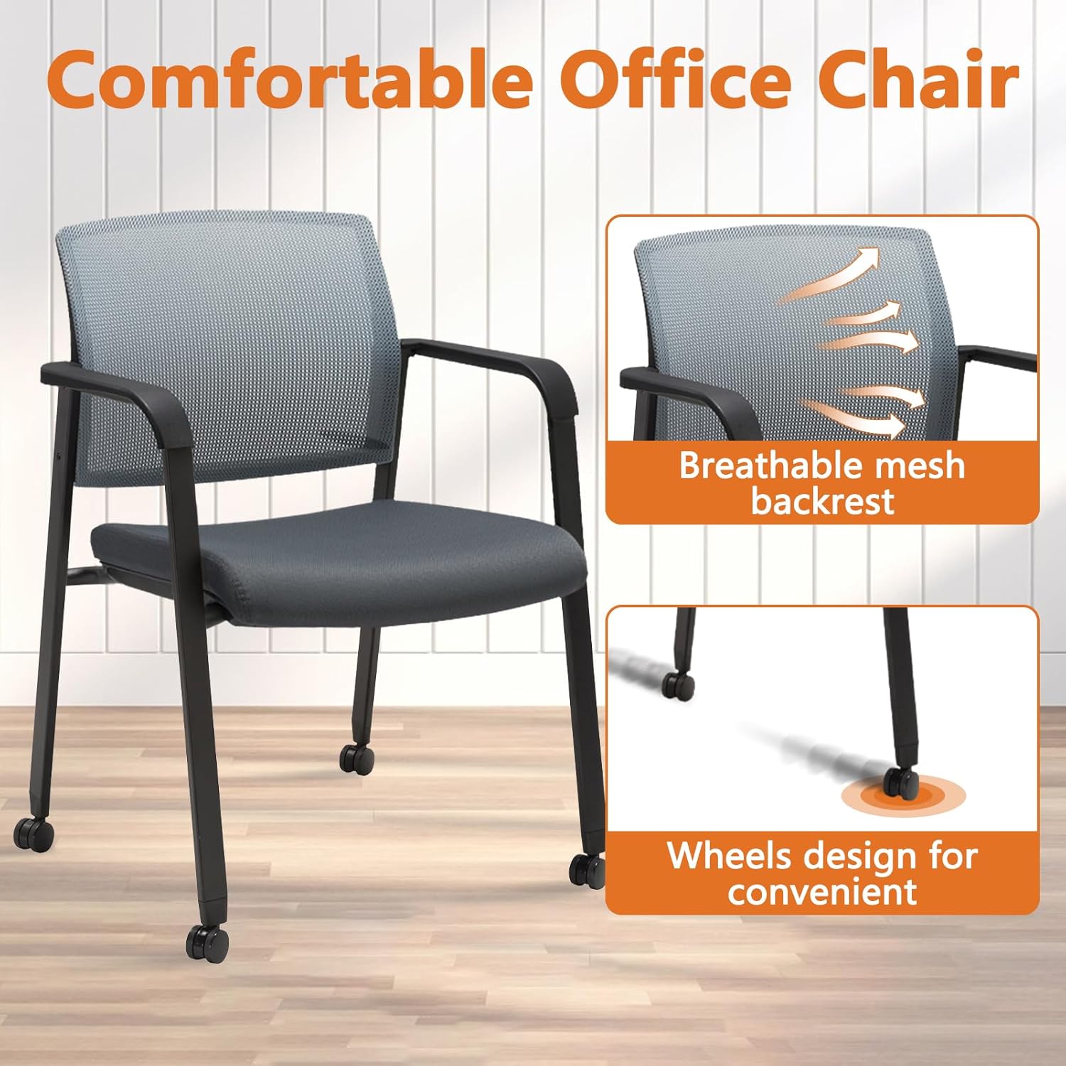 - 【Enjoy A First-Class Seating Experience】Say goodbye to pain and fatigue. Our mesh guest chair combines comfort and style. The breathable mesh back allows air flow to keep your back cool, while the cushion is filled with high-density sponge, which is not easily deformed after sitting for a long time. Streamlined fixed armrest help you relieve arm pressure.