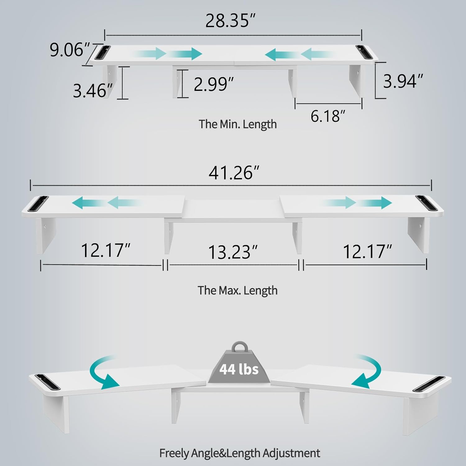 - Flexibility of extension and move: With two sides resting on the middle riser with a pivot point, this desk stand riser makes the whole unit easy to extend and angle.