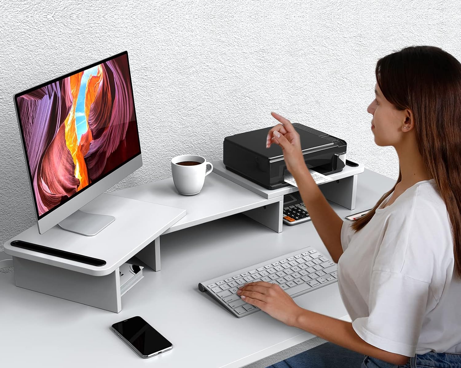 - Save space to get organized: Free up valuable desk space, and make full use of the space under the desk stand for office stuff.