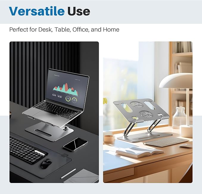 - Durable Aluminum Alloy Construction:Crafted from premium aluminum alloy, this laptop stand is both durable and lightweight. The anti-slip silicone pads securely hold your laptop in place, providing stability for devices up to 16 inches, including MacBook, Lenovo, ASUS, and Dell.